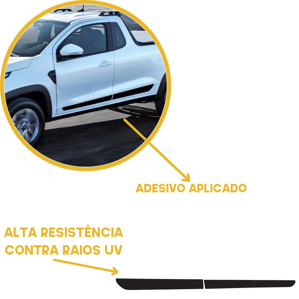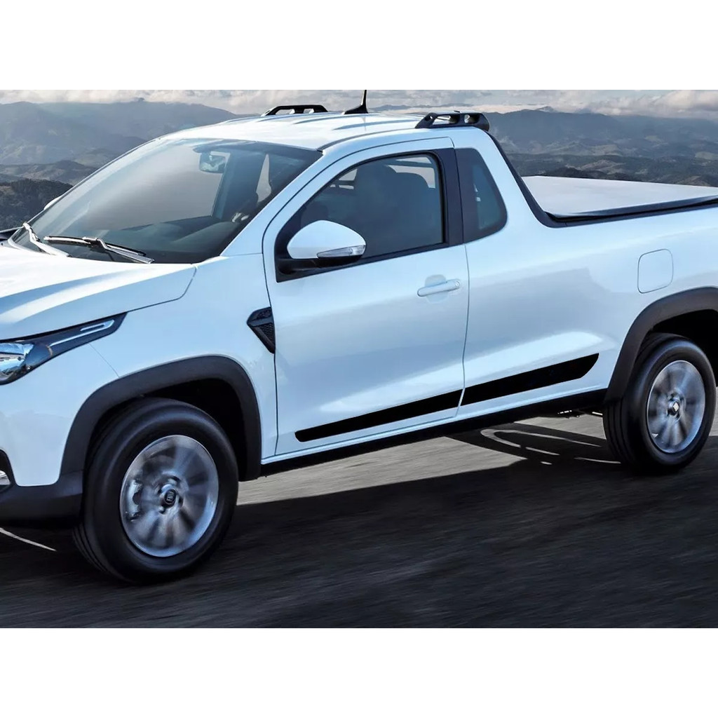 Kit Par Adesivo Faixa Lateral Preto Nova Fiat Strada Endurance 2021 2022 2023 24