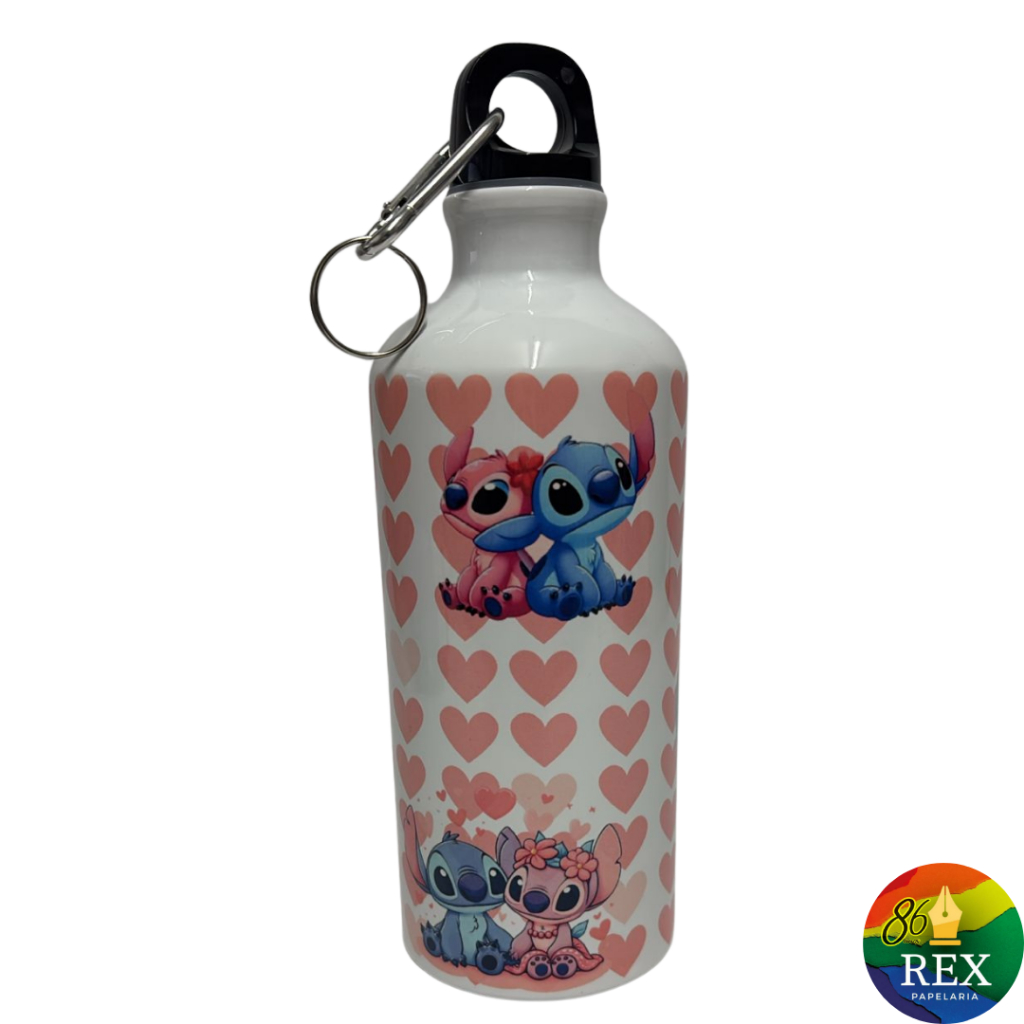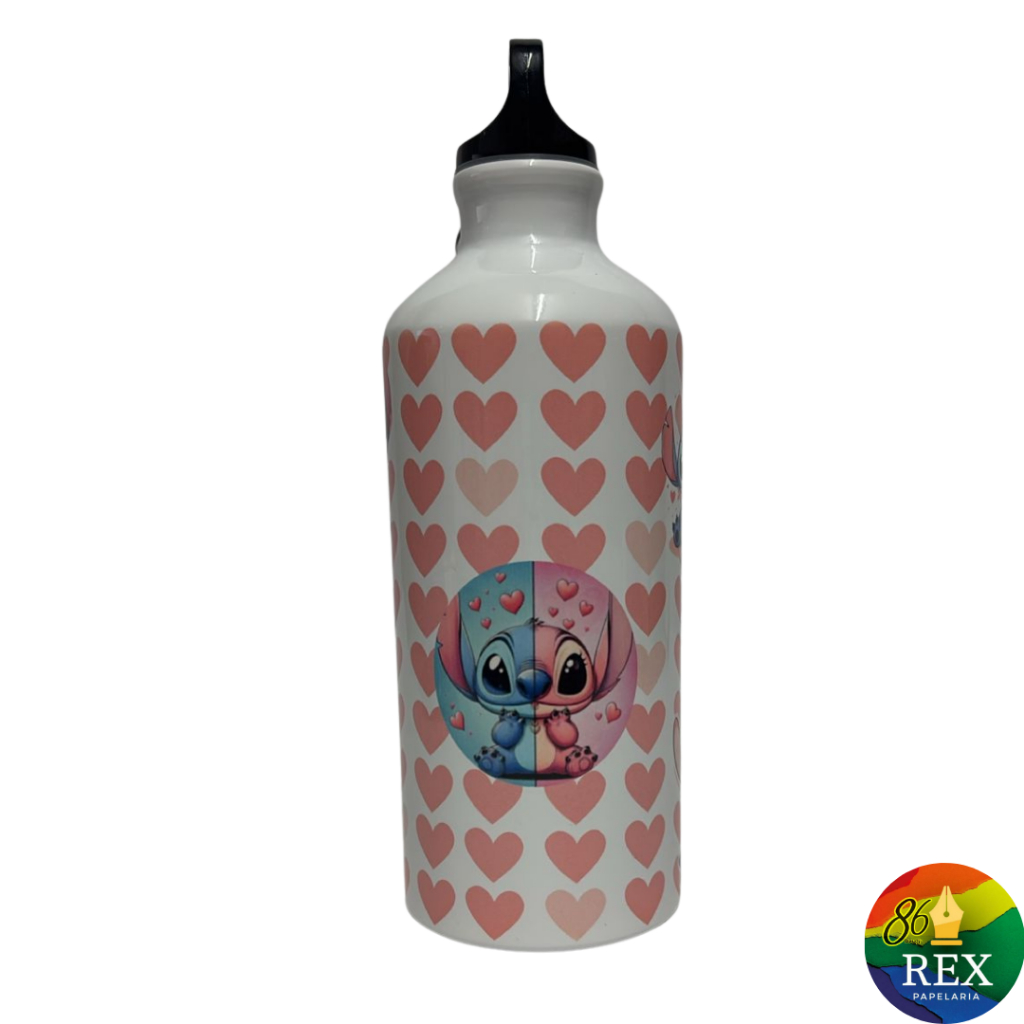 Garrafa de Alumínio 600ml Stitch & Angel Super Resistente com ou sem Nome Personalizado