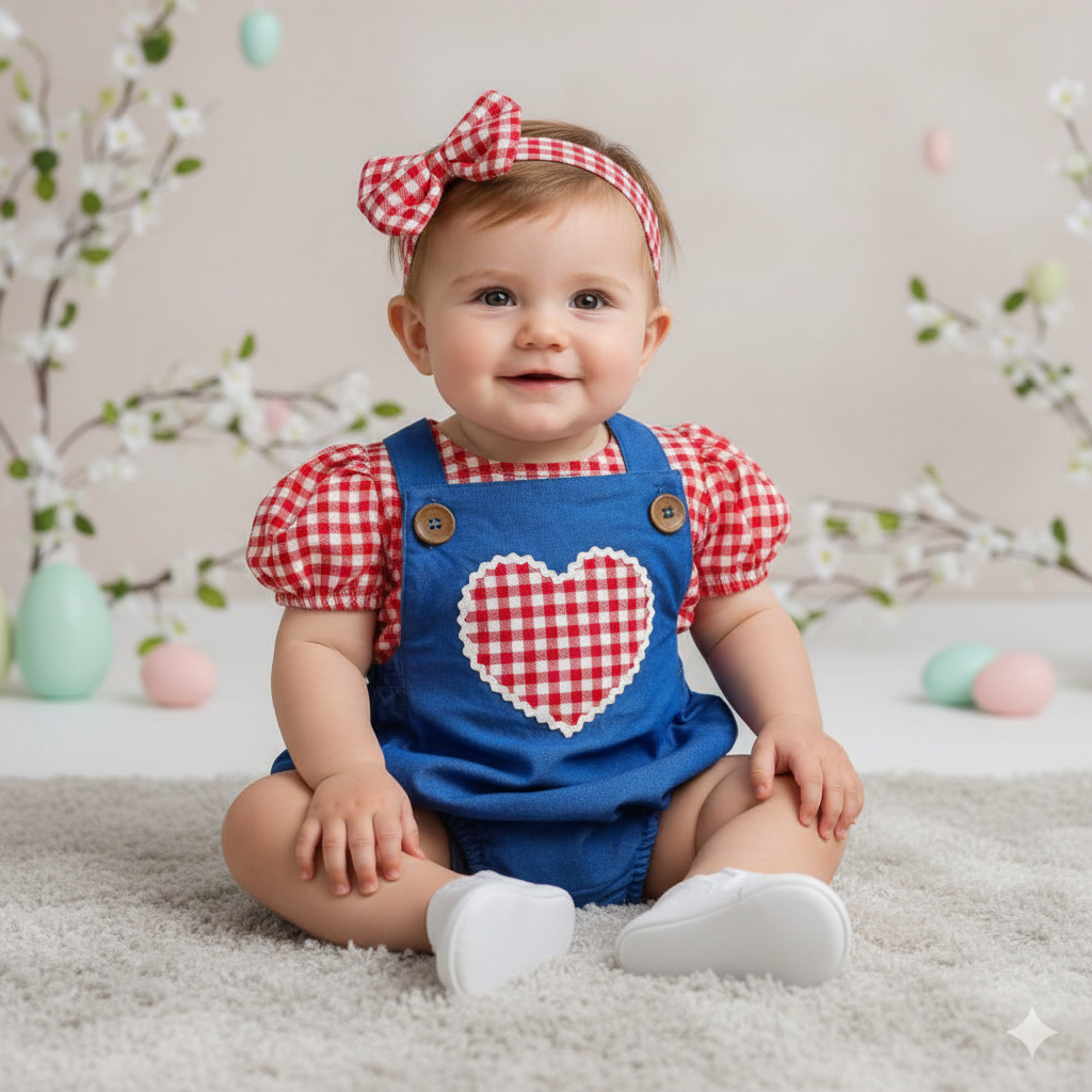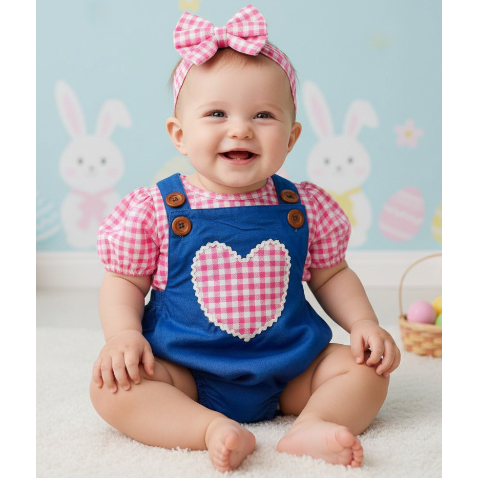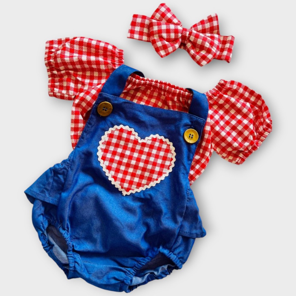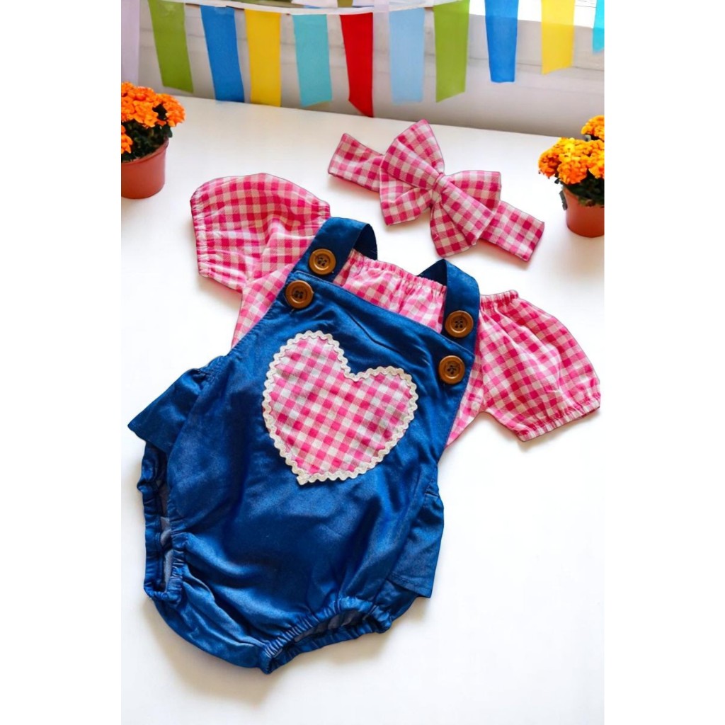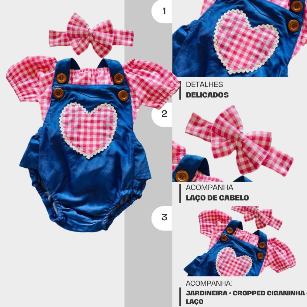 Jardineira Conjunto Romper Ciganinha Menina Fazendinha Xadrez Pascoa Body Bebe 3 peças Festa
