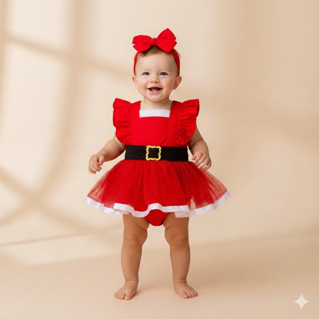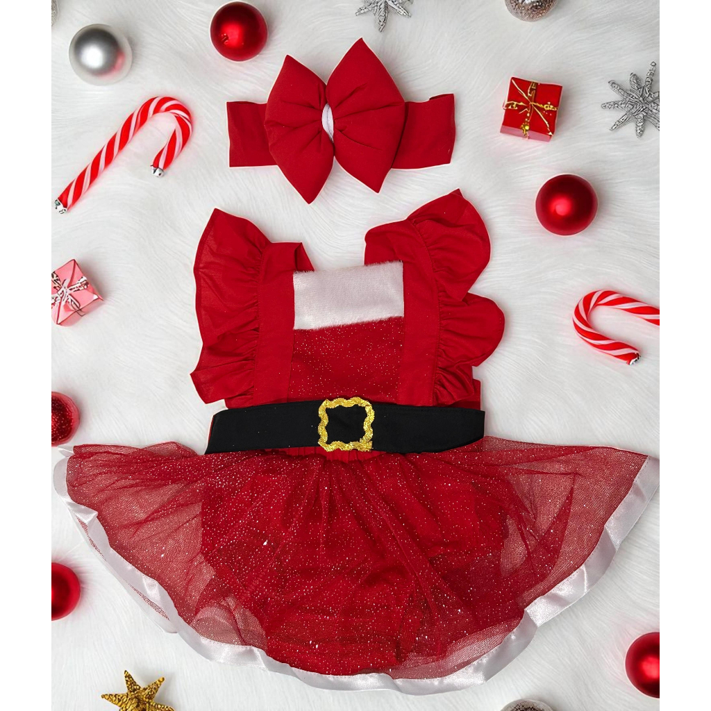 Jardineira Romper Salopete Infantil Body Feminina Roupa Bebê Natal Mamae Noel Presente Mesversário