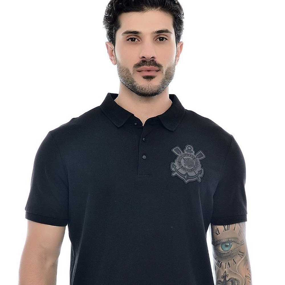 Camisa Polo Corinthians All Black Masculina Oficial