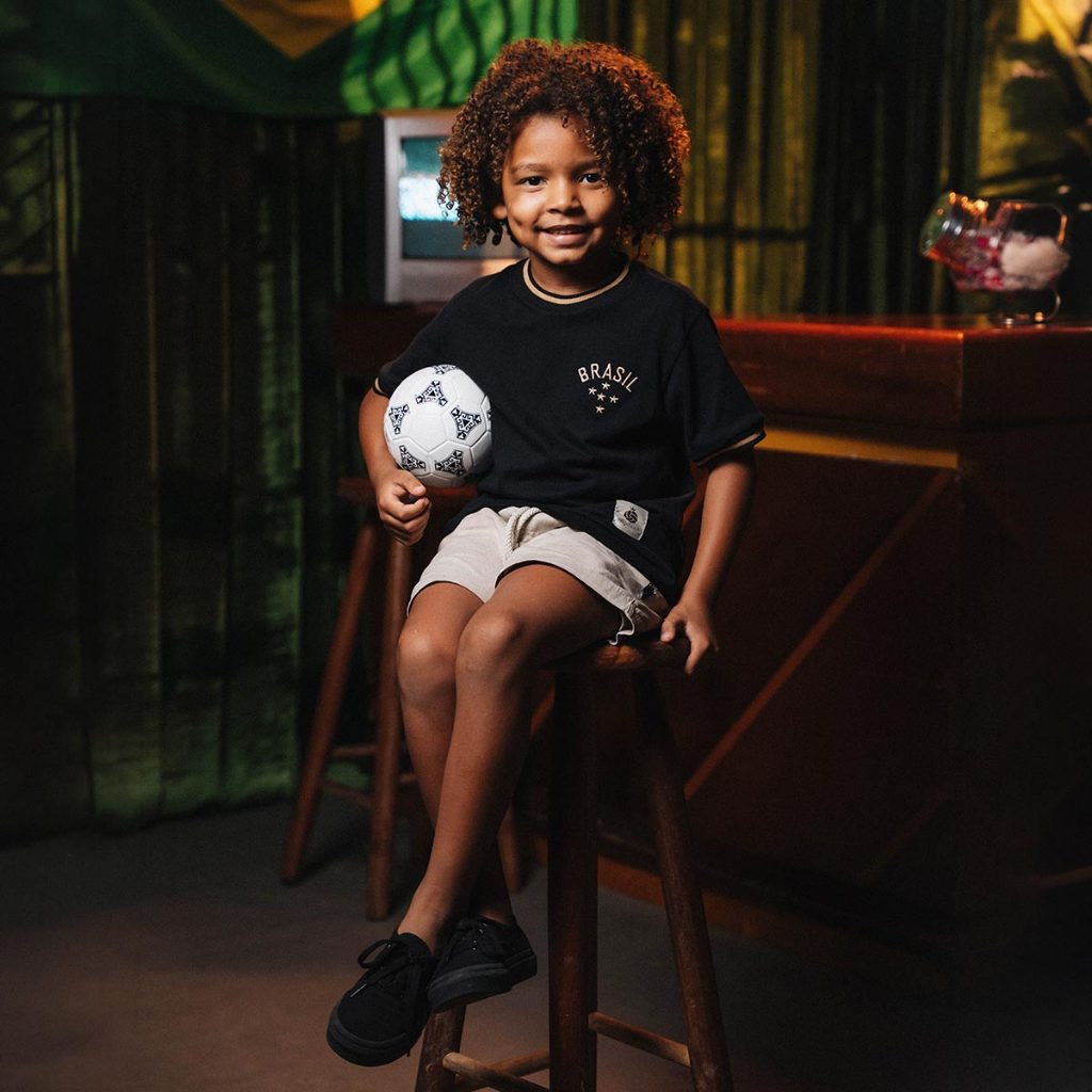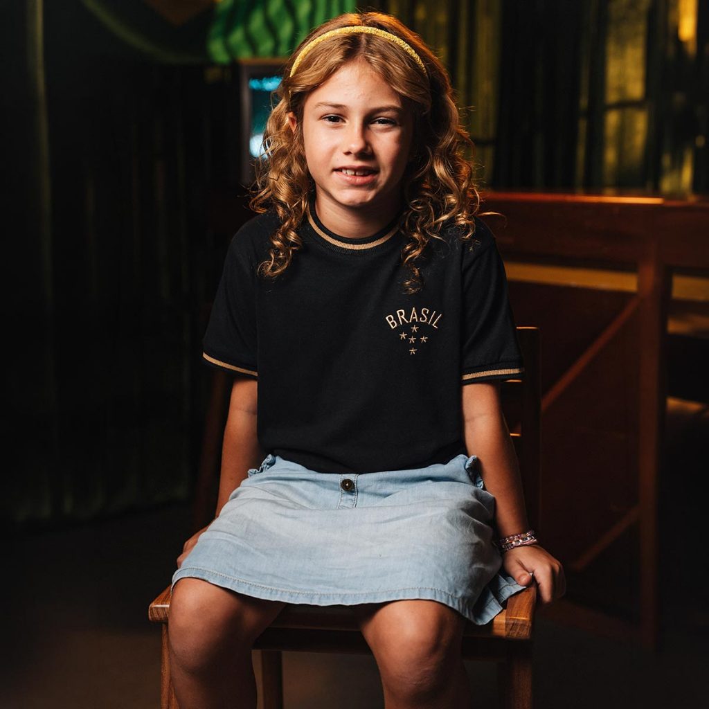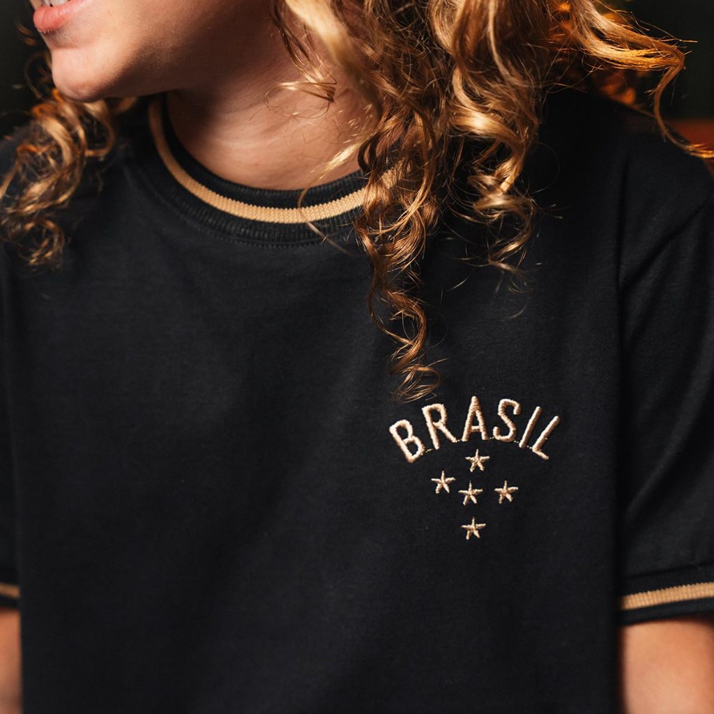 Camisa Brasil Gold Preta Retrô Infantil Juvenil Unissex Oficial