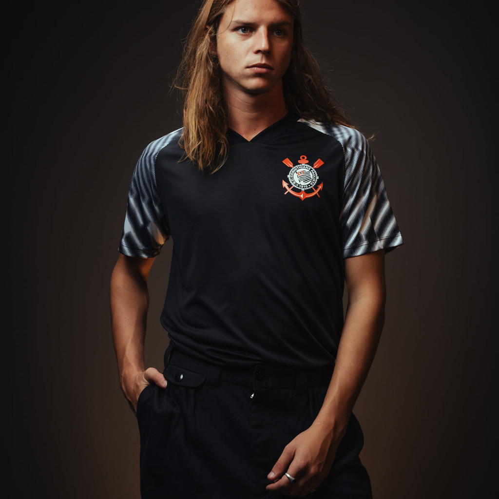 Camisa Corinthians SCCP Lines Preta Masculina Oficial