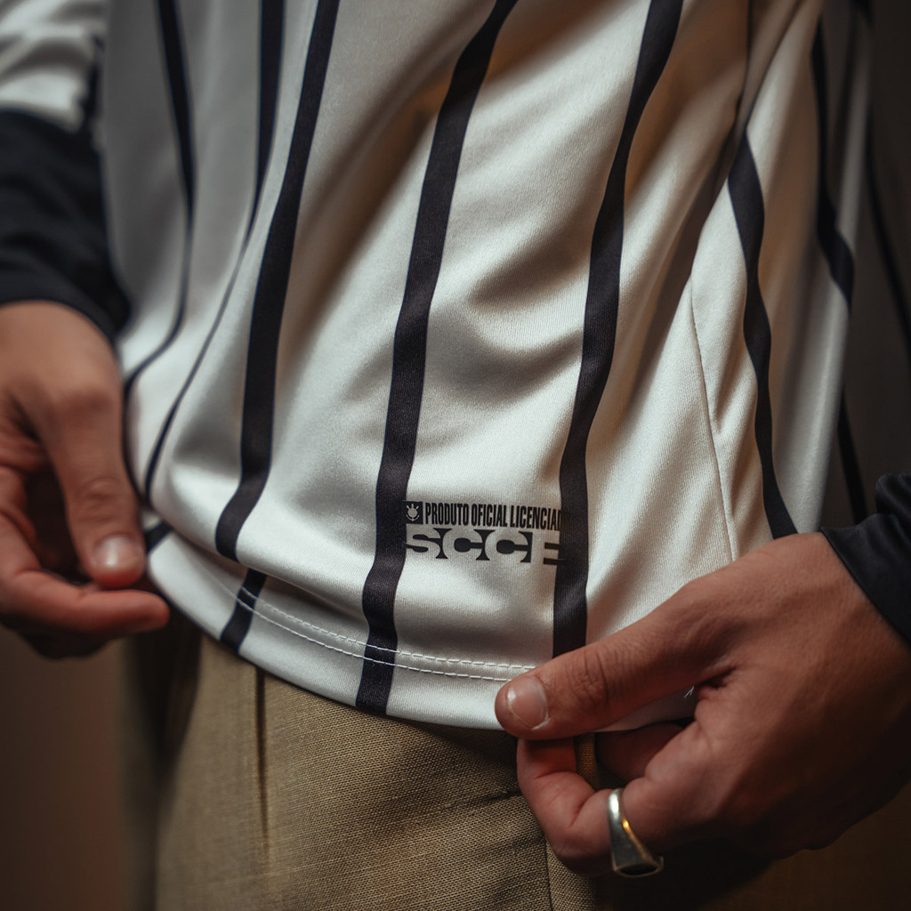 Camisa Corinthians CP Offwhite Listras Manga Longa Masculina Oficial