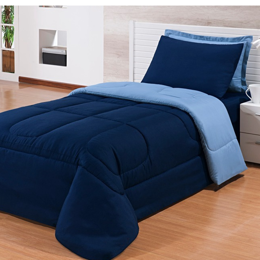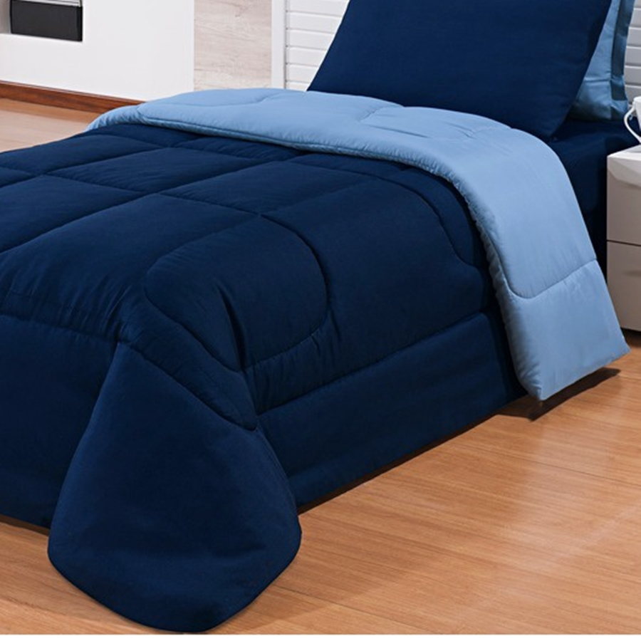 Edredon Solteiro Avulso Dupla Face Para Cama Na Promoção Marinho/Azul bb
