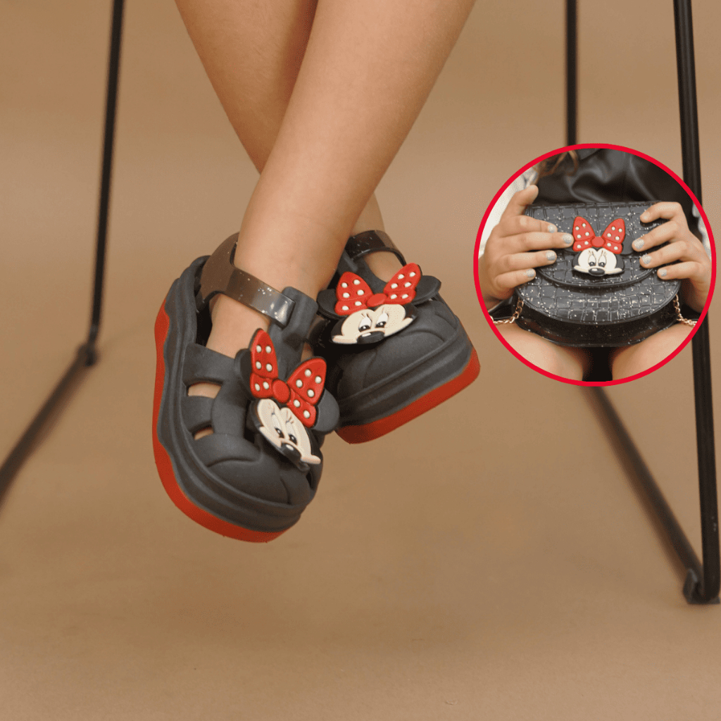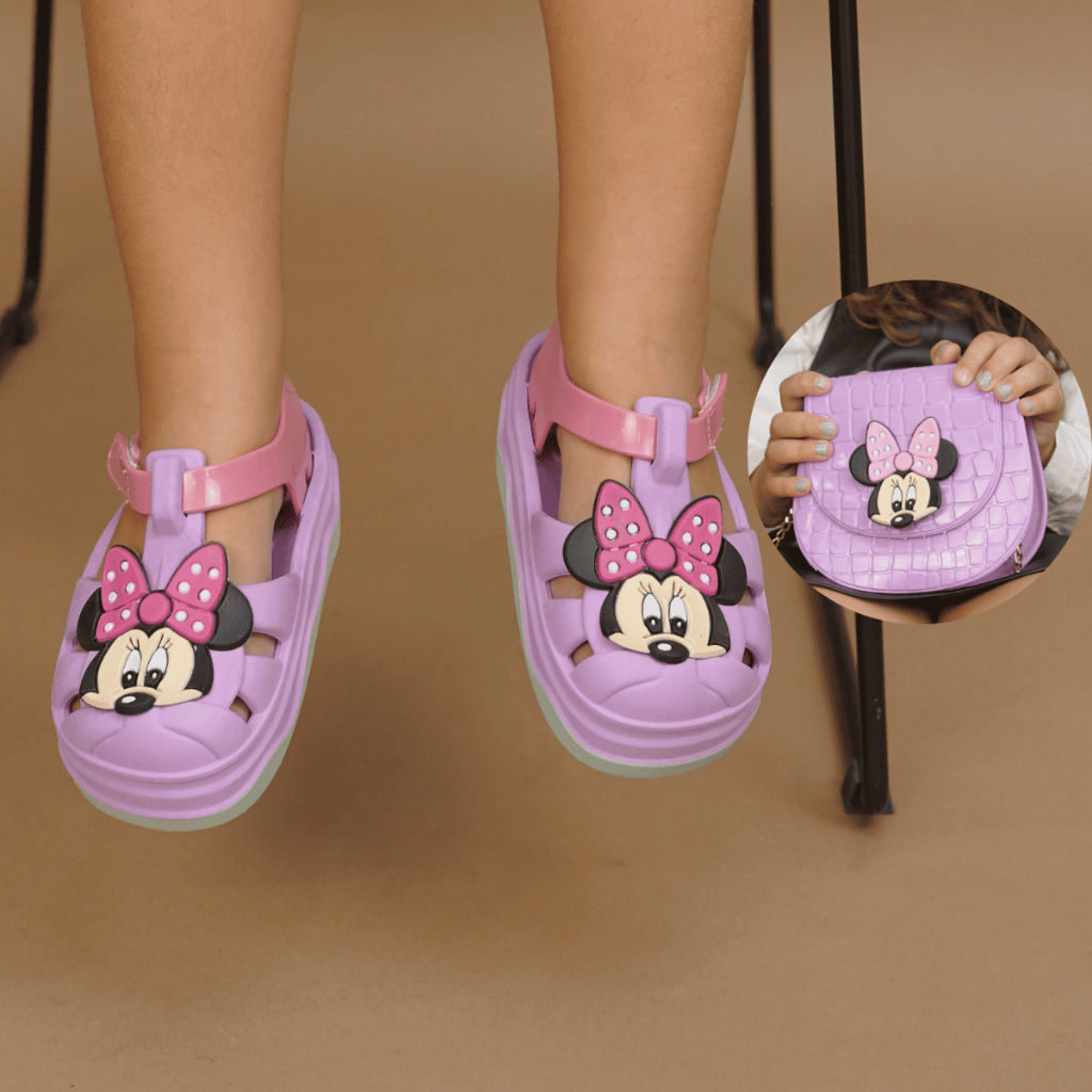 Kit Sandália Babuche Minnie com Bolsa Infantil Leve e Confortável Para Meninas Modernas