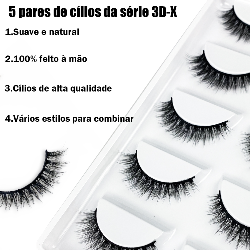 Caixa De 5 Pares De Cílios Postiços Naturais Modelo X01 X05 X06 X08 S19