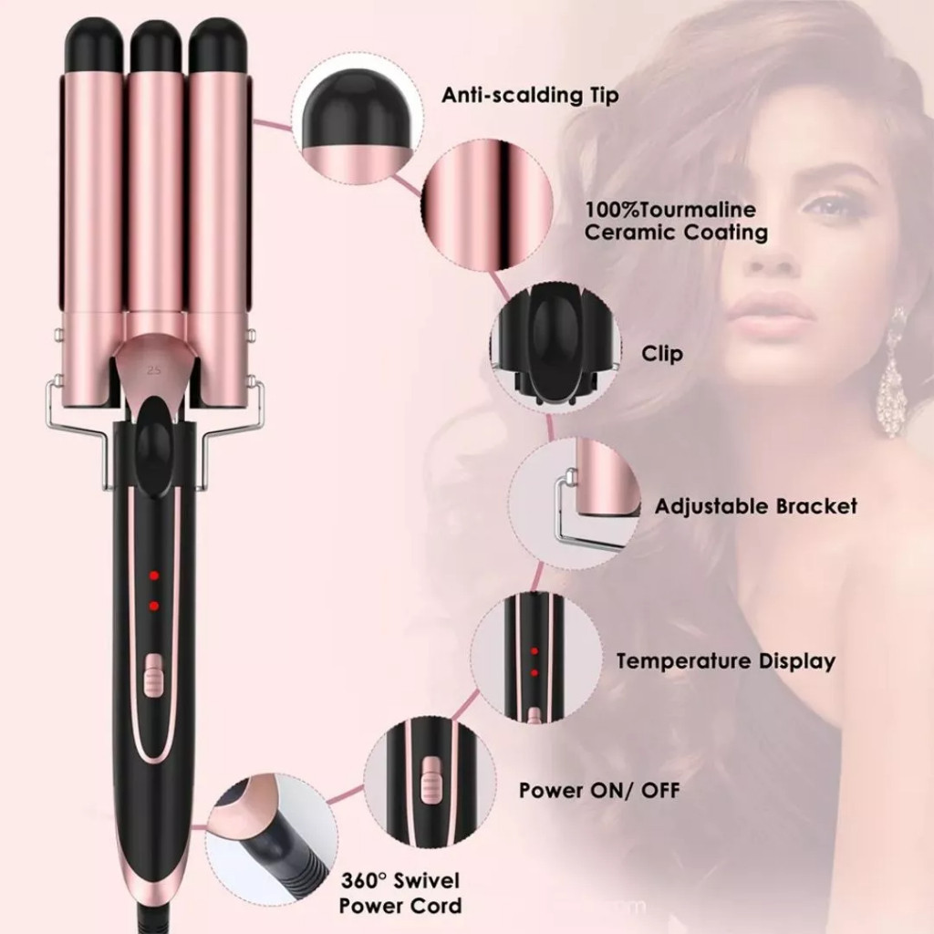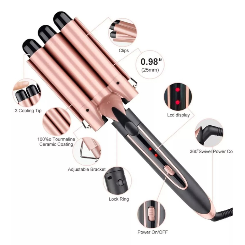Chapinha Triondas Ondulador Formador Triplo 22mm Modelador de Cachos Onda Cabelo Cerâmica Para Longo E Curto 200°C