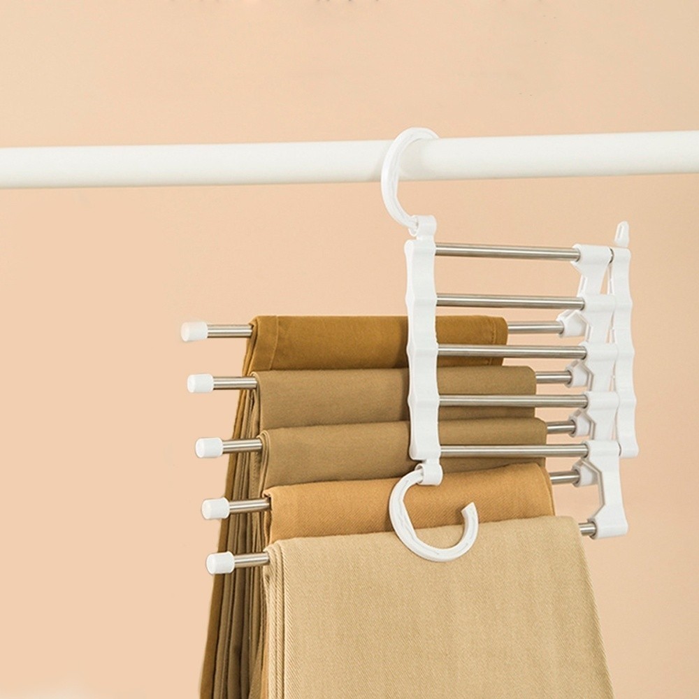 Cabide Para Calças Organizador Aço Inox Multifuncional Retrátil 5 em 1
