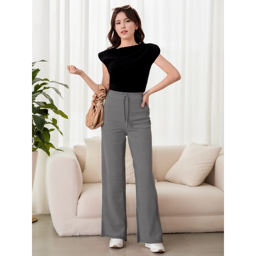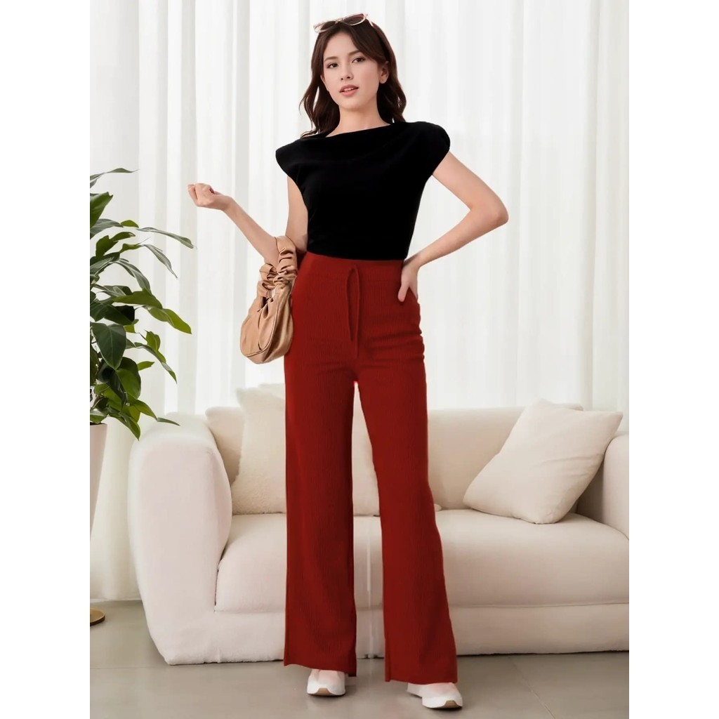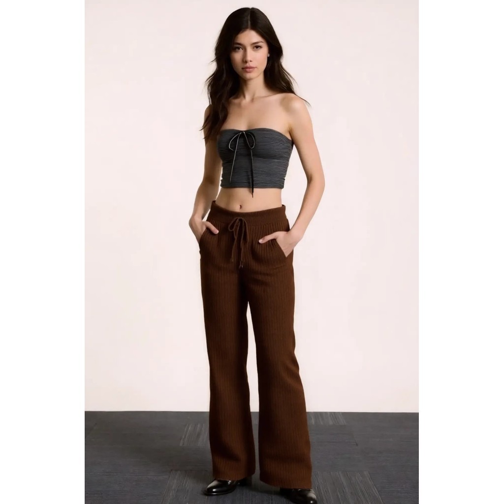 Calça Feminina Com Amarra de Tricô Modal