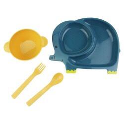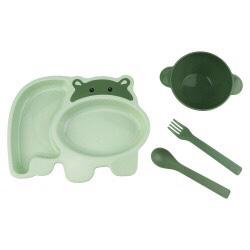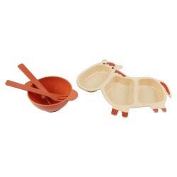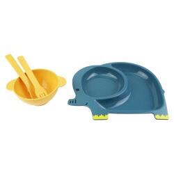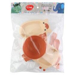 Kit Papinha Lanche Infantil Animal Bebê Crianças Resistente - 4 pçs Prato tigela Garfo e Colhe