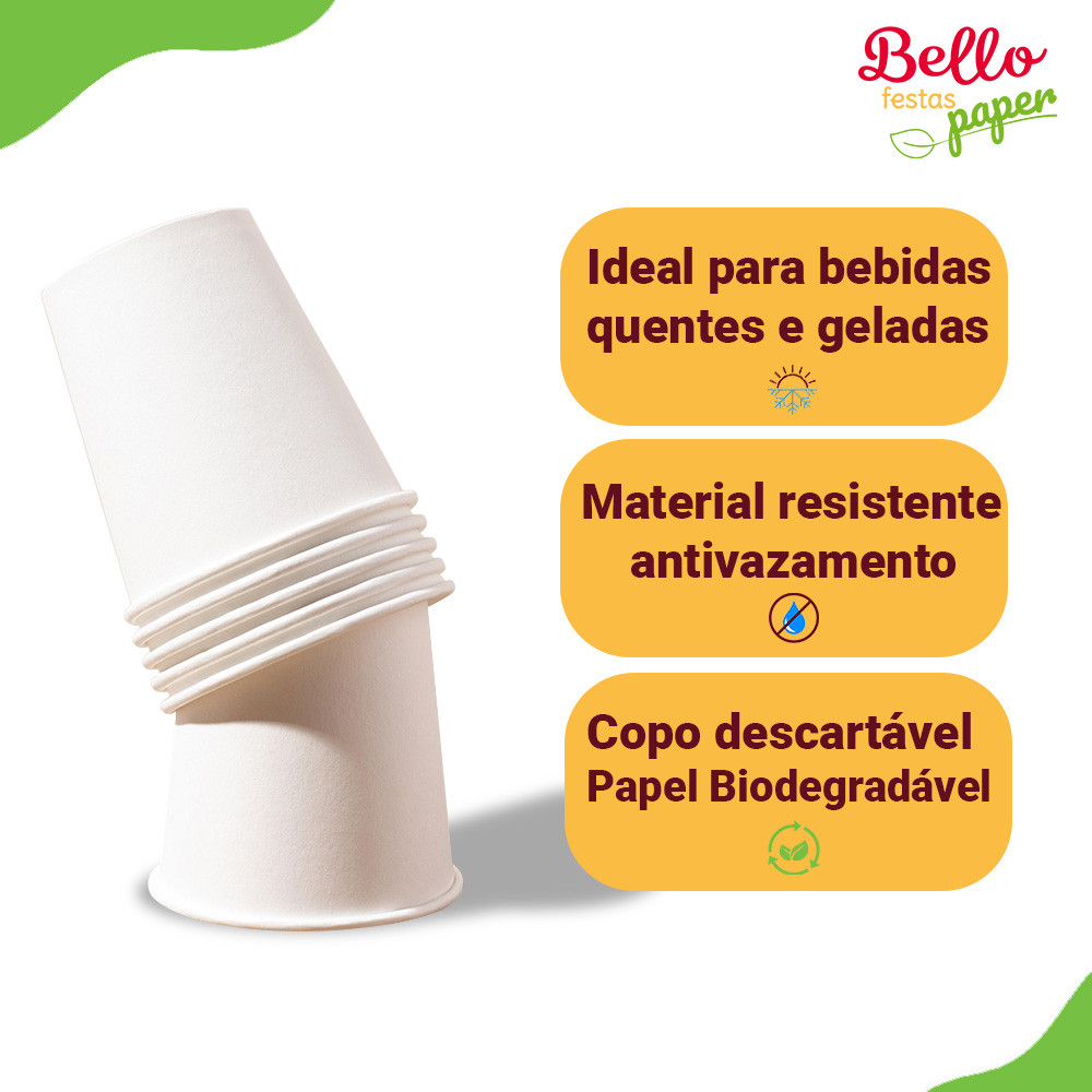 Copo de Papel Branco Biodegradável 210ml Bello Festas Paper c/100 Un