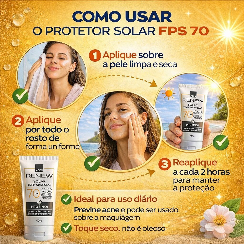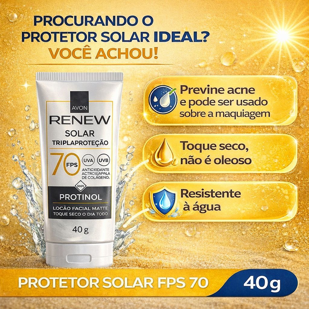 Kit 2 Protetor Solar Avon FPS 70 Renew Protinol Tripla Proteção 40g Original