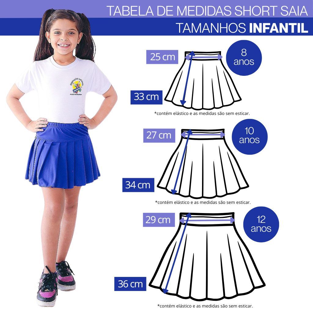Short Saia Infantil Juvenil Liso Escolar Meninas Uniforme Tamanho 2 ao 16