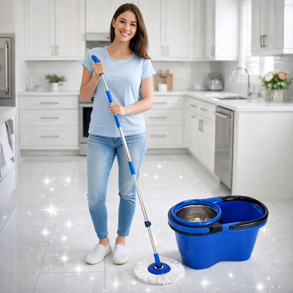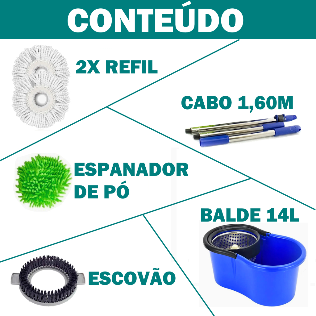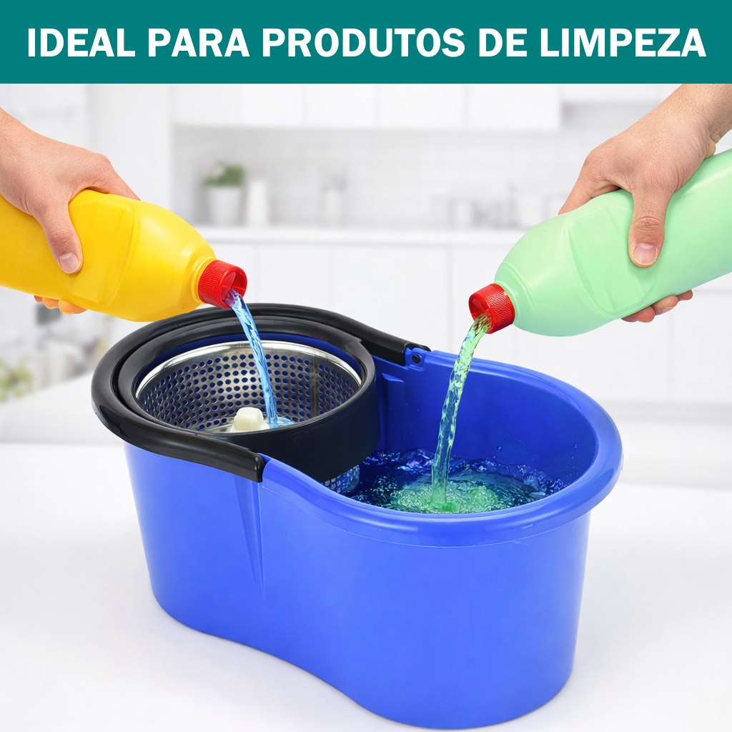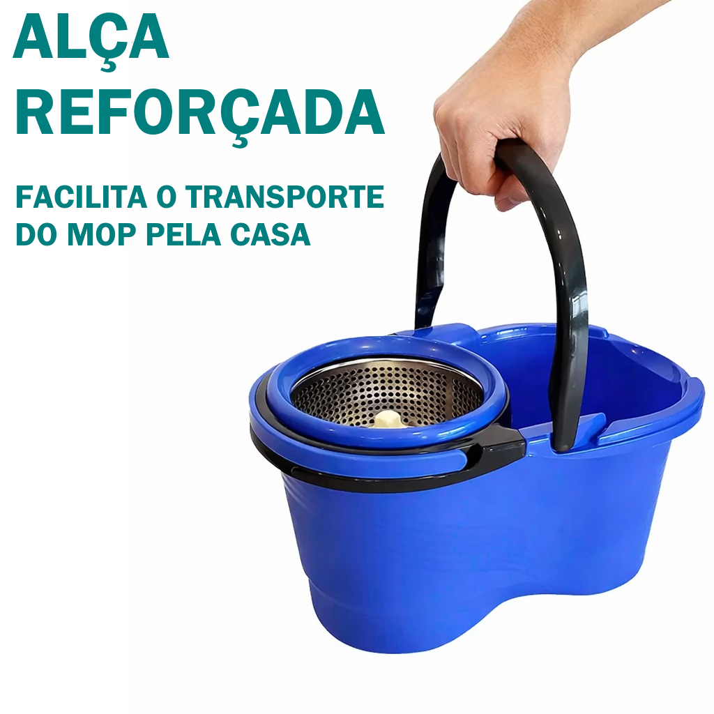 Balde Mop Esfregão Pro Perfect Reforçado Inox 360 Esfregão Reforçado Top com 3 Refil 14L Lava e Seca