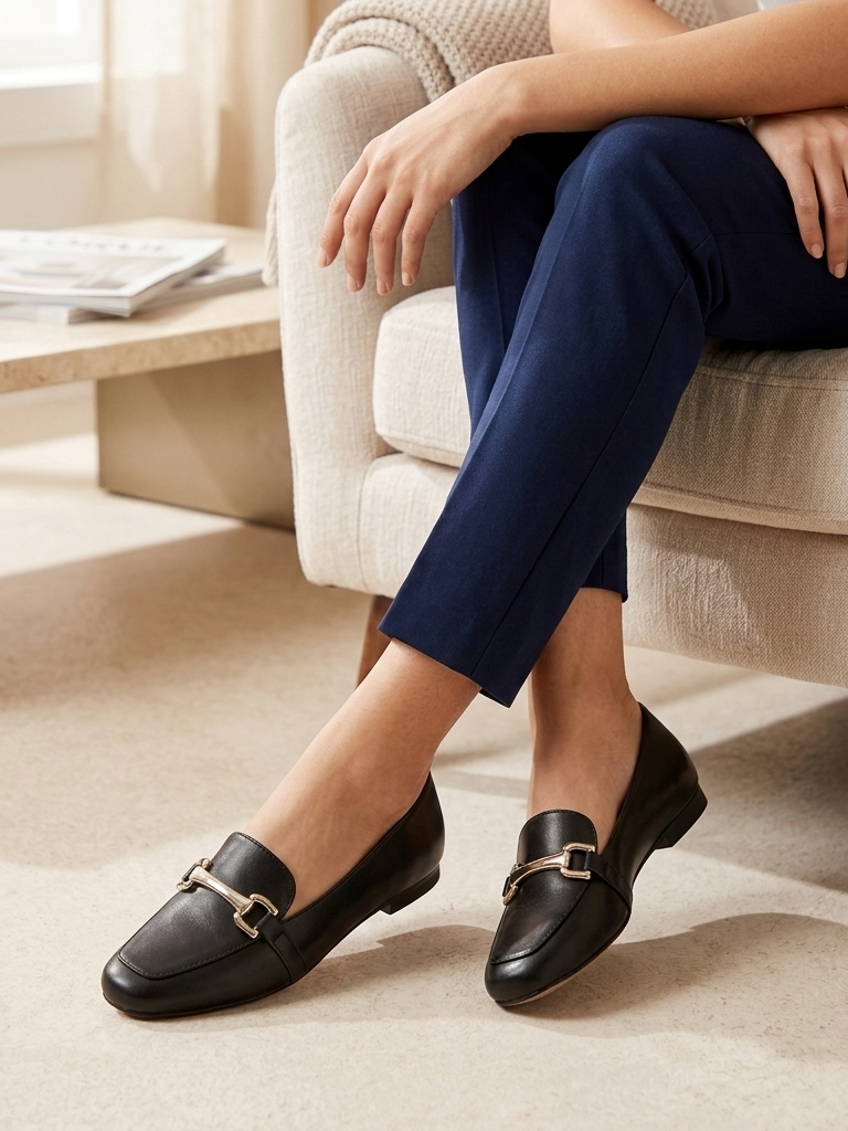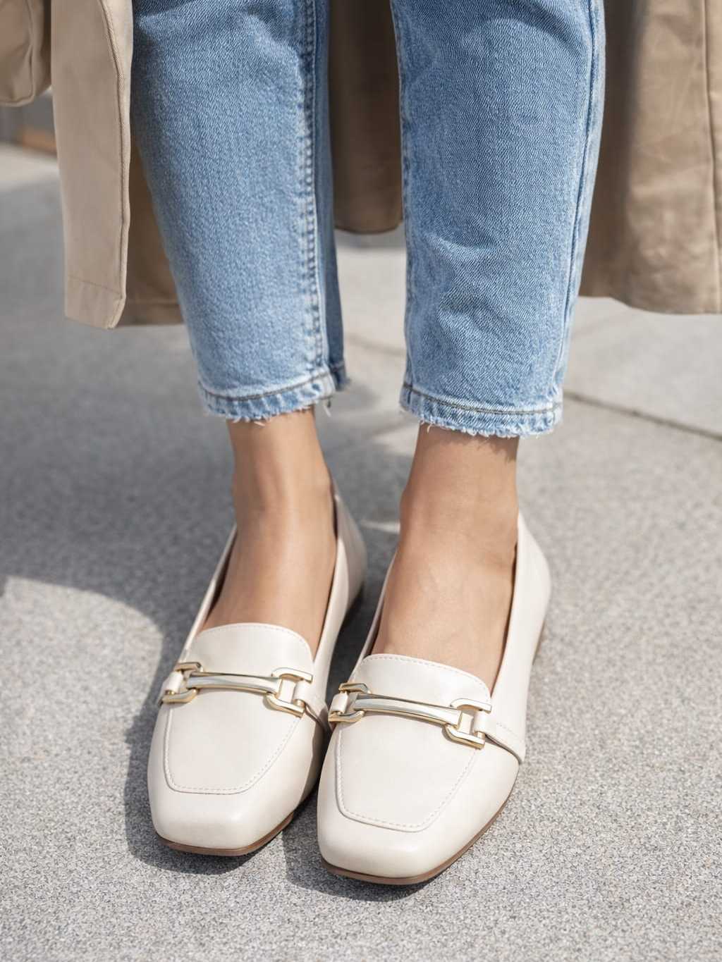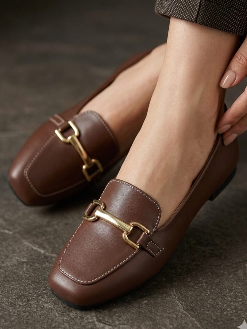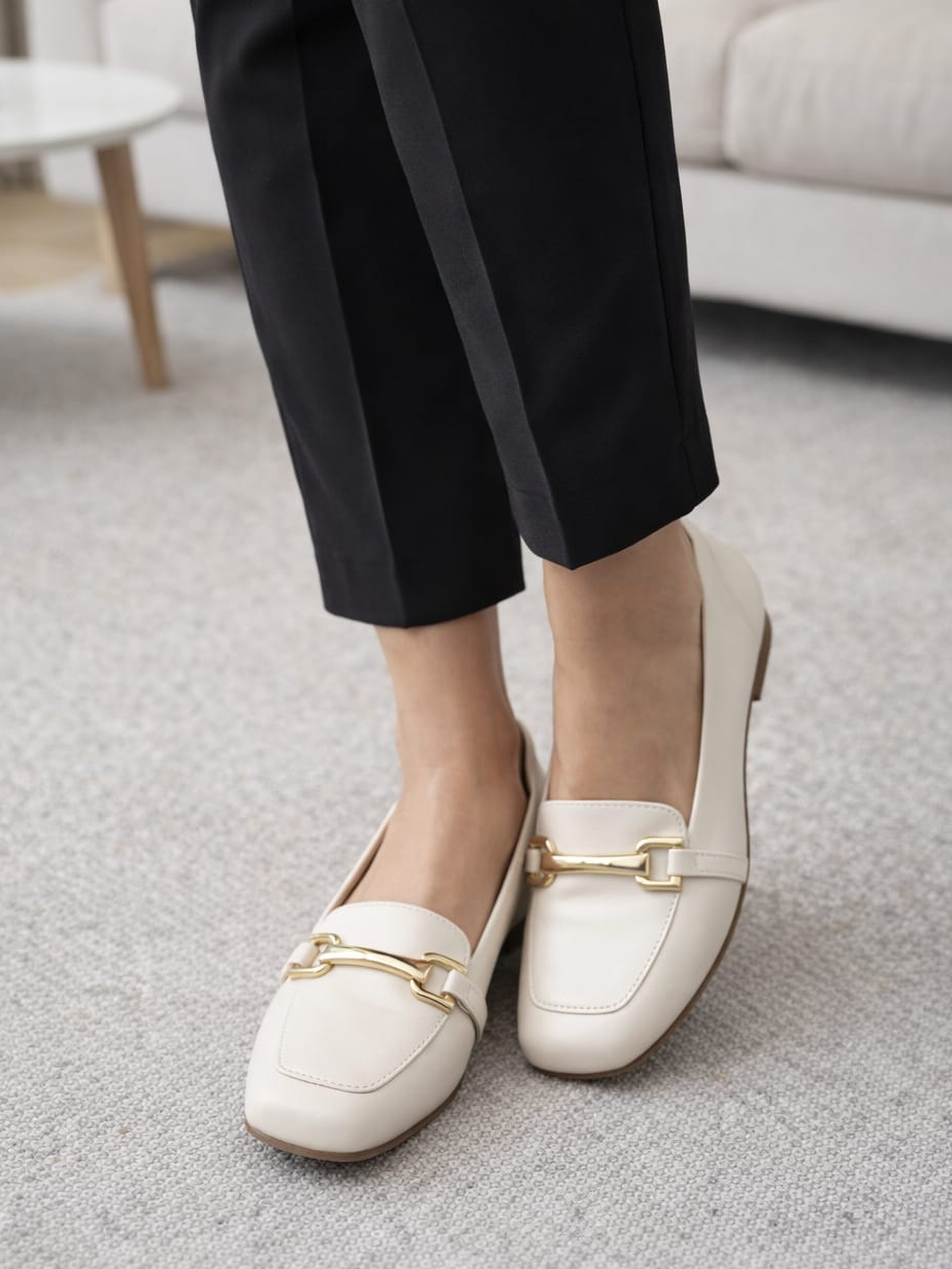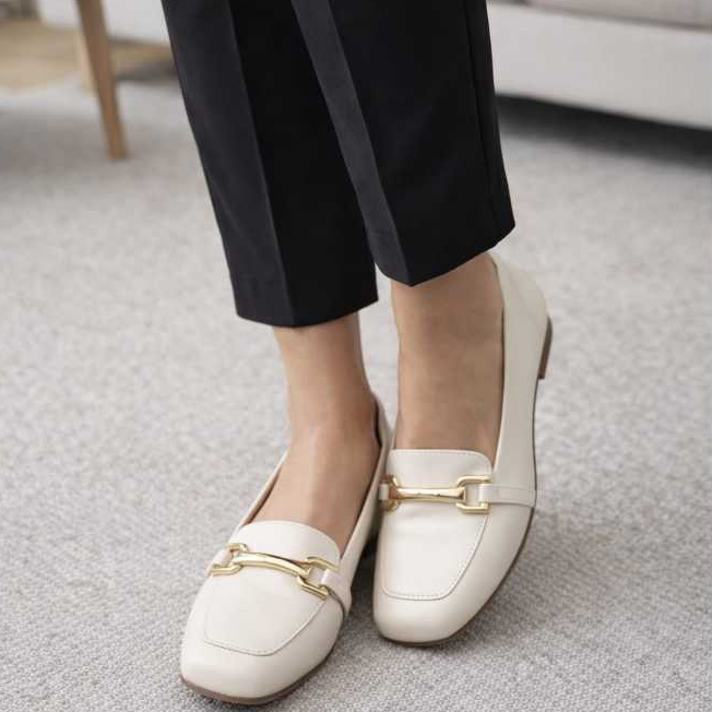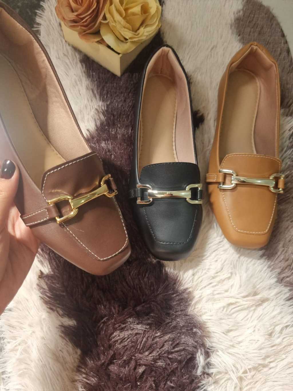 Mocassim Feminino Bico Quadrado Confortavel Enfeite ABS Dourado Calçado Sapatilha Moda Casual