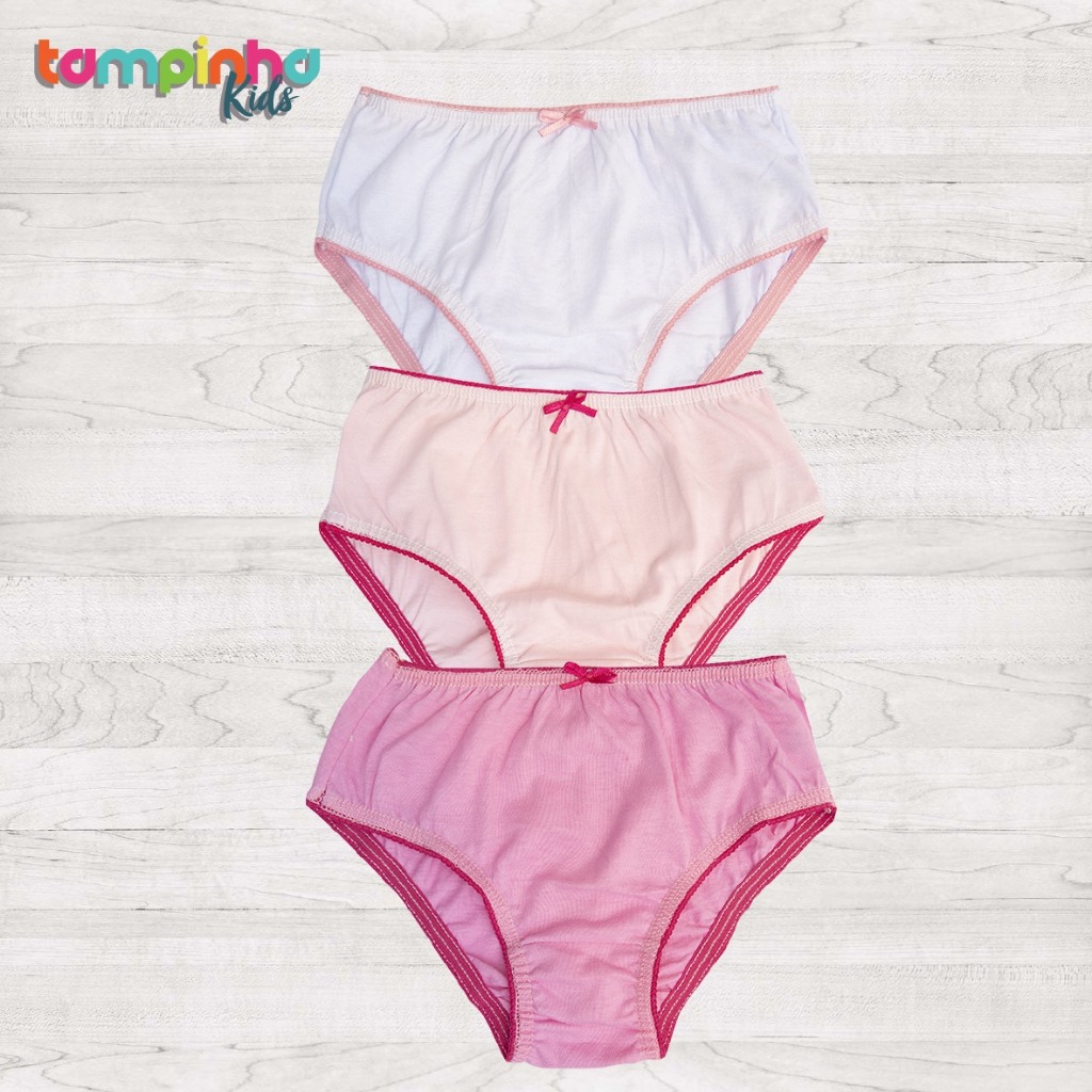 Kit 3 Calcinhas Infantil ( Lisas - Sortidas ) - Tamanho PP ao GG - 100% Algodão - Ref: 3901