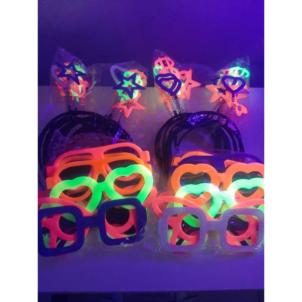 Kit Festa Balada 40 Pecas Aniversario Casamento Confraternizacao Tiara Oculos Nreon Luz Negra
