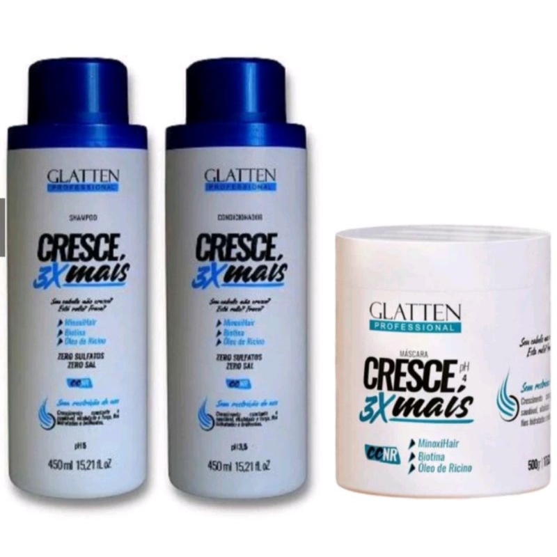Kit Glatten Cresce 3X – Shampoo, Condicionador e Máscara | Crescimento Acelerado e Fios Fortes