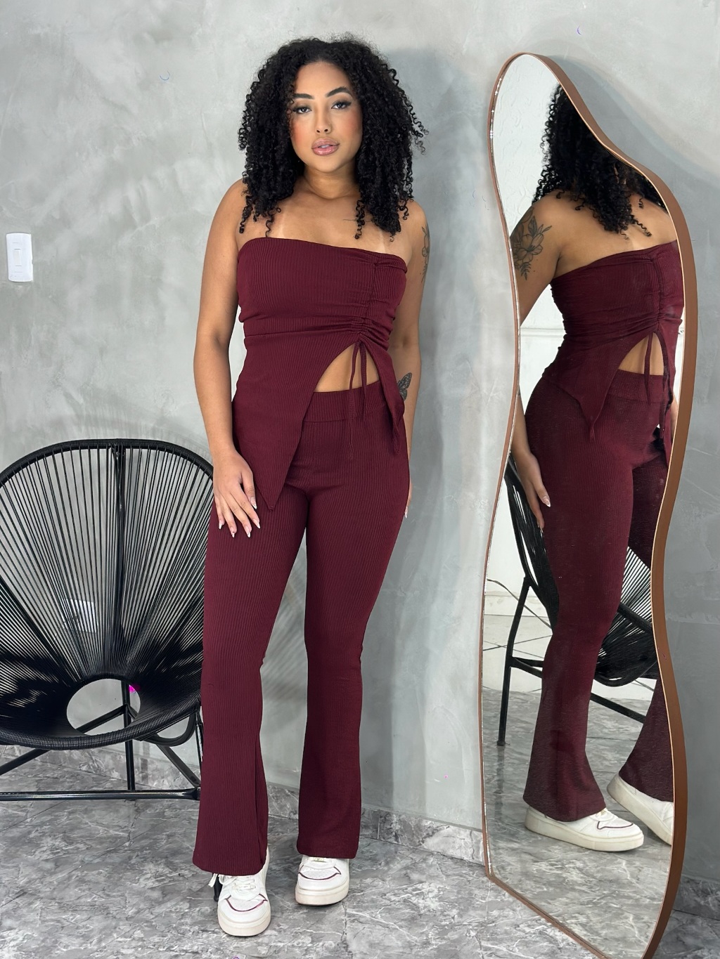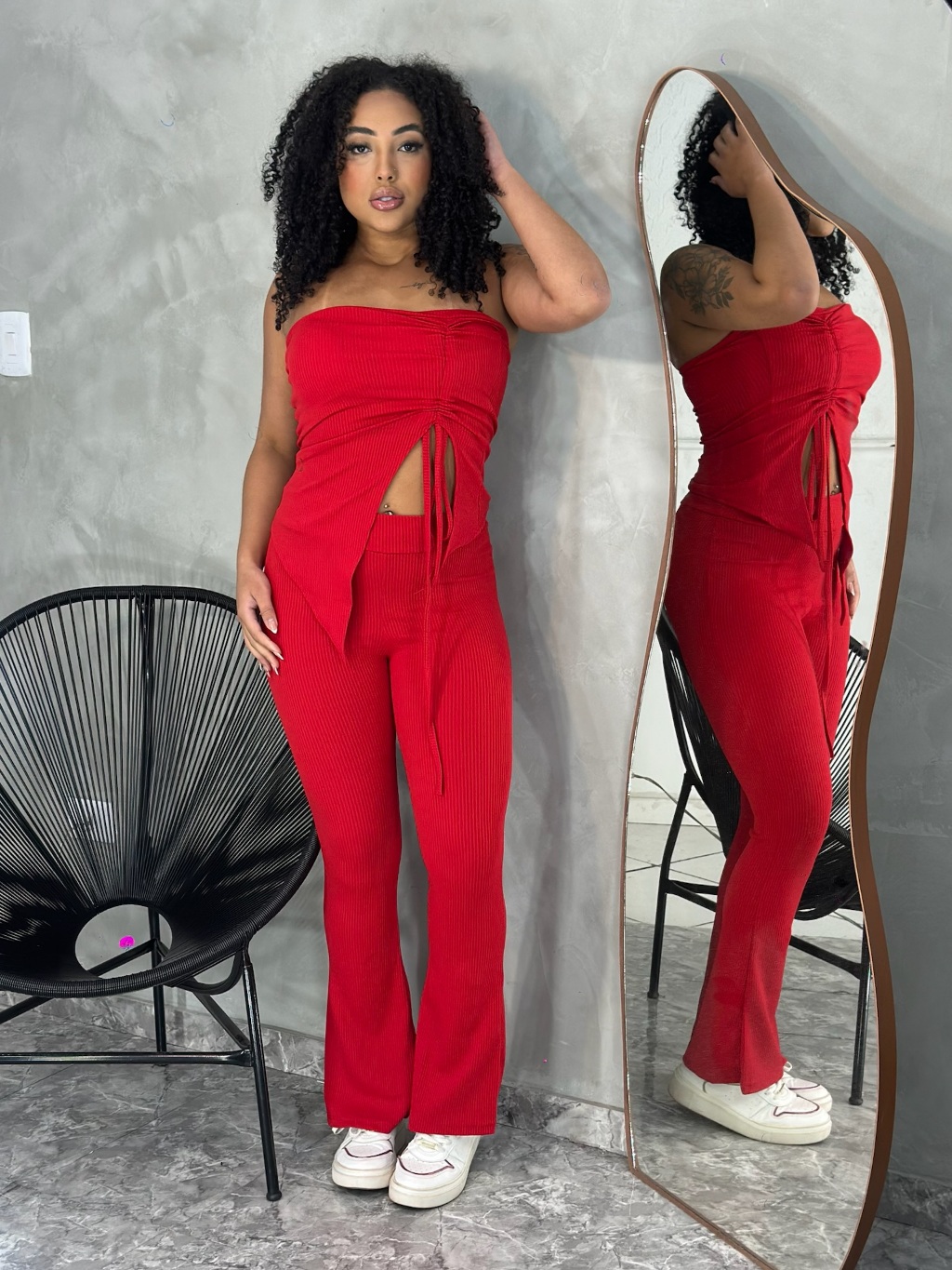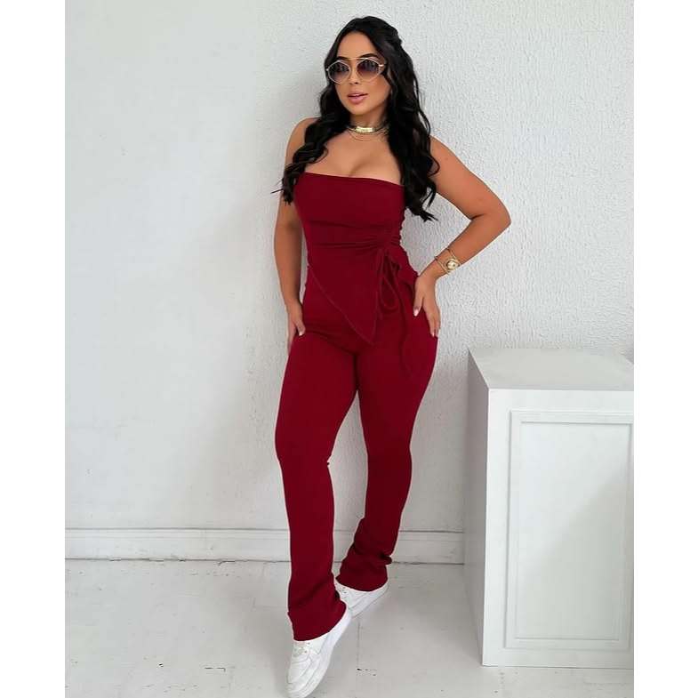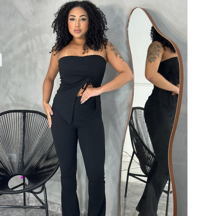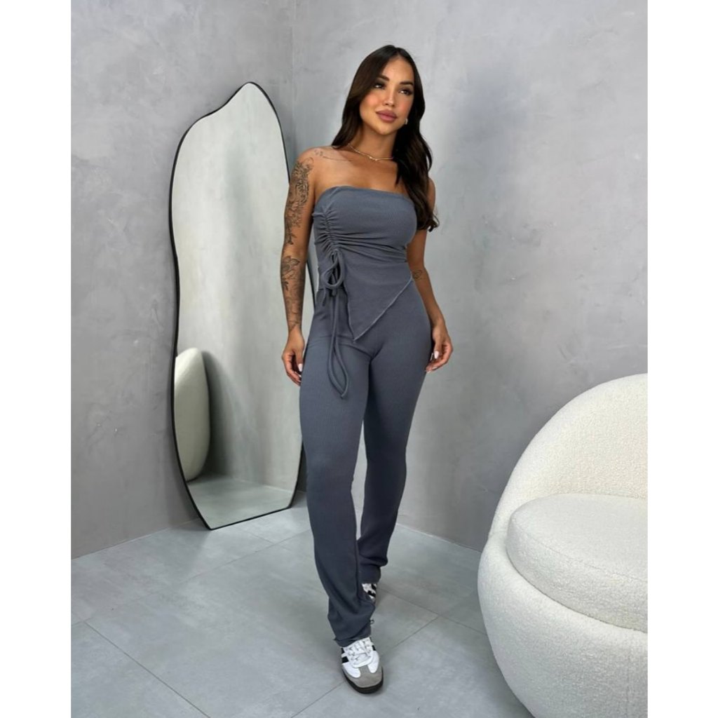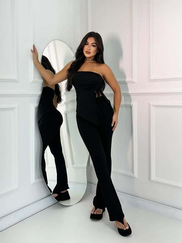 Conjunto Feminino Calça e Blusa Tomara Que Caia Com Regulagem Moda Blogueira Moda Gringa Estiloso