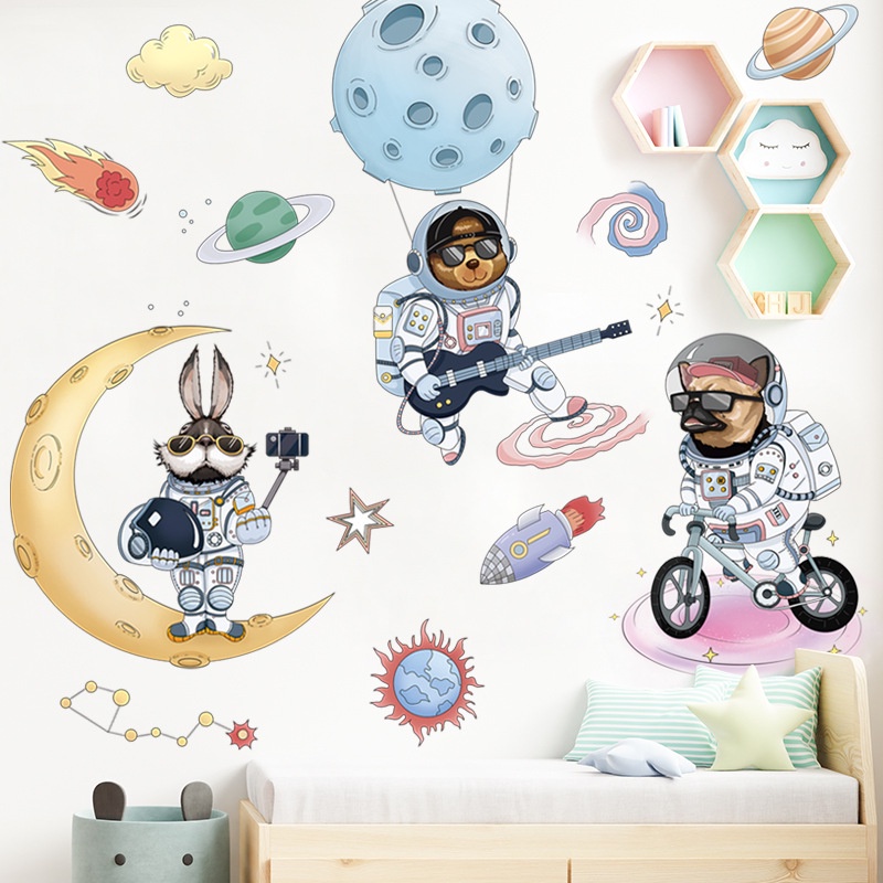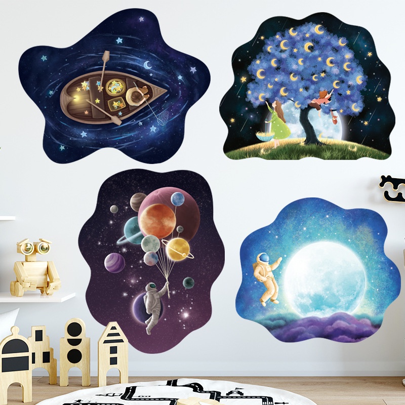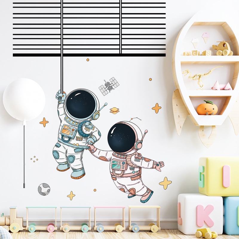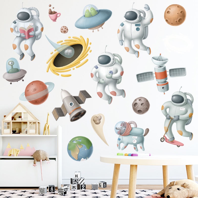 Adesivo De Parede Com Tema Do Jardim De Astronauta Espaço Para Quarto De Criança