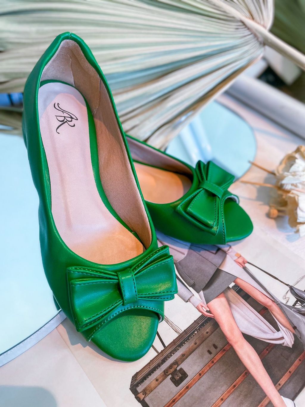 Sapatilha Peep Toe Verde com Laço Duplo