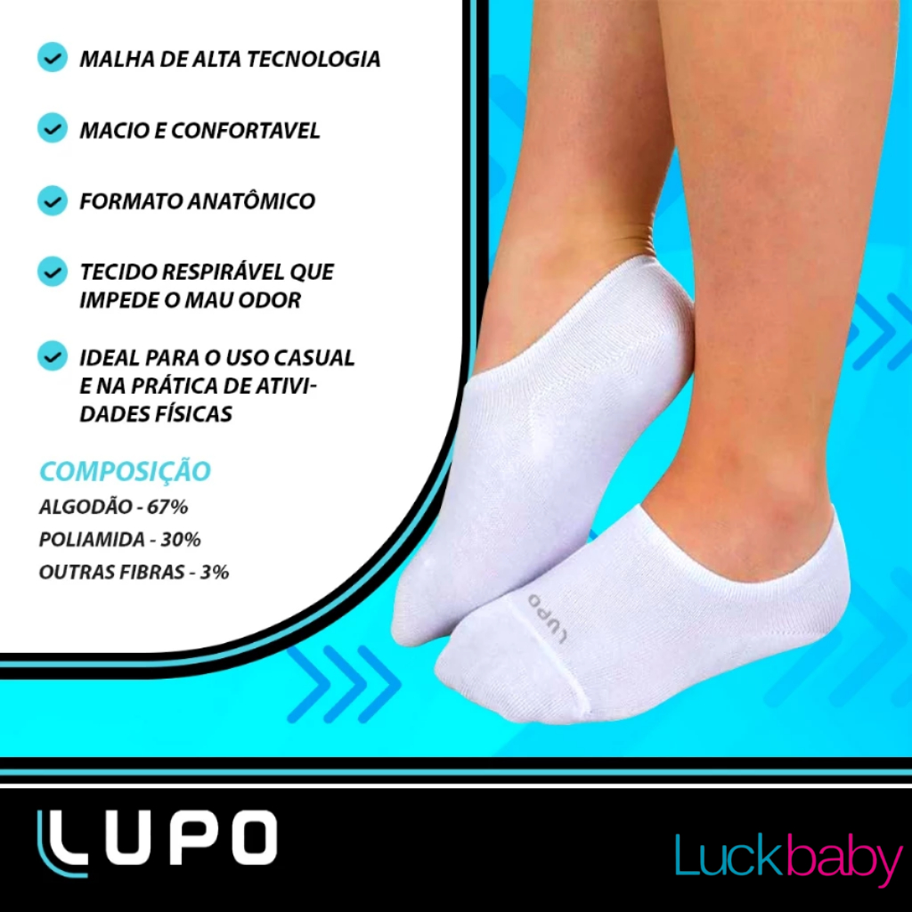 Kit 10 Pares Meias Soquete Lupo Sapatilha Original Algodão Masculina Feminina Cano Curto Baixo
