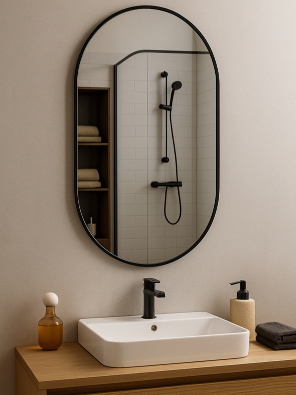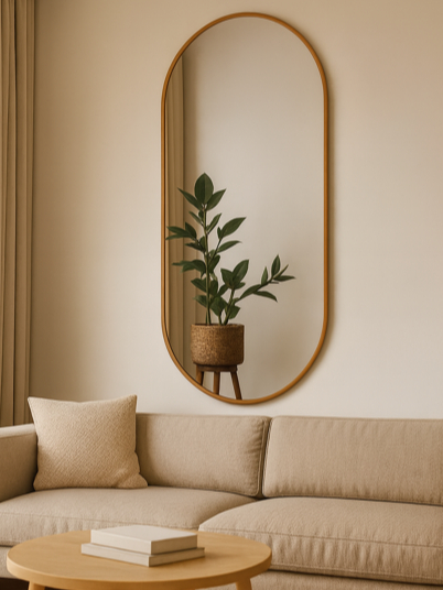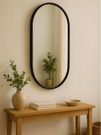 Espelho Orgânico Pílula 60cm x 120cm Moldura Couro Decoração Sala Banheiro Corpo Inteiro Oval Loja