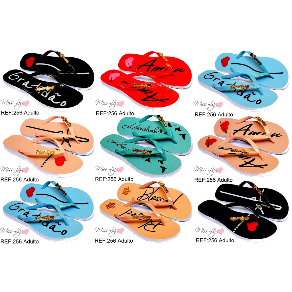 Kit com 10 pares de sandalia chinelo rasteira gratidão Fé atacado revenda