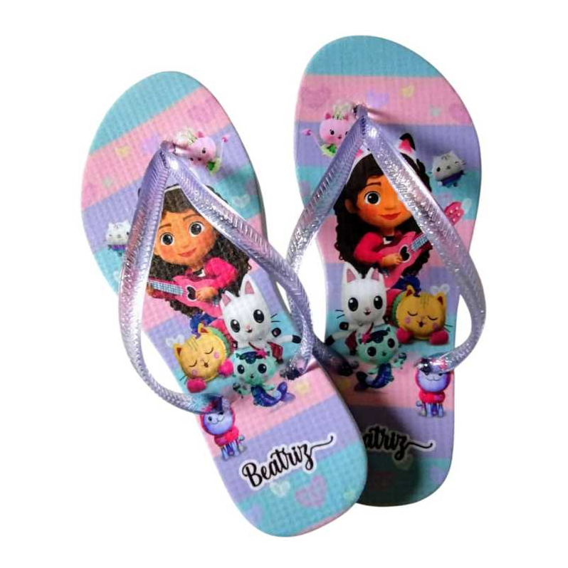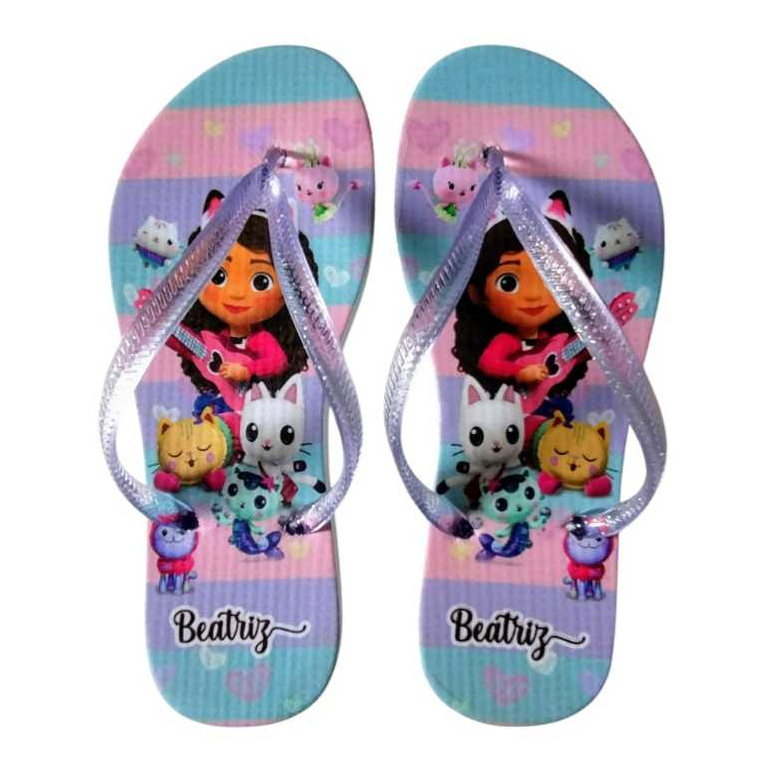 Chinelo Casa Magica de Gabby Lilás Menina Kids Baby Personalizado e Estampado Com o Nome da Criança