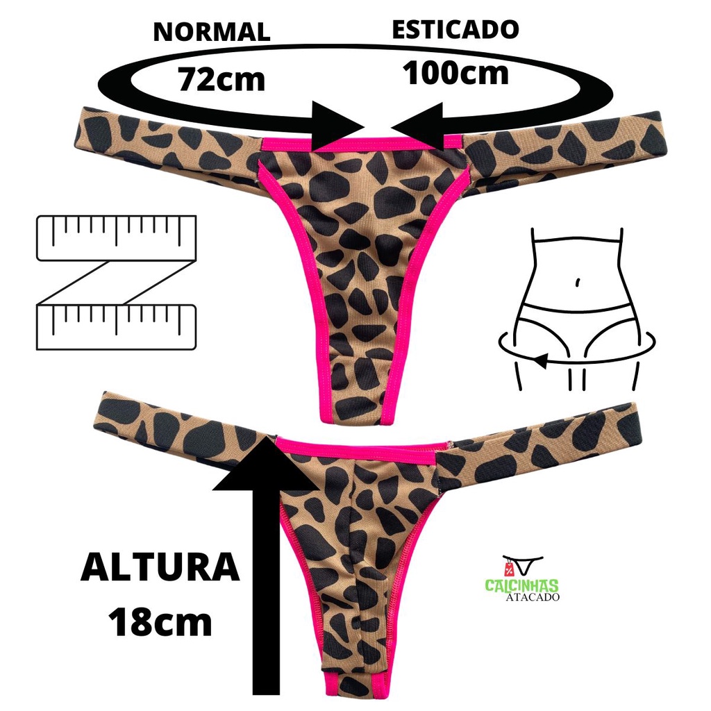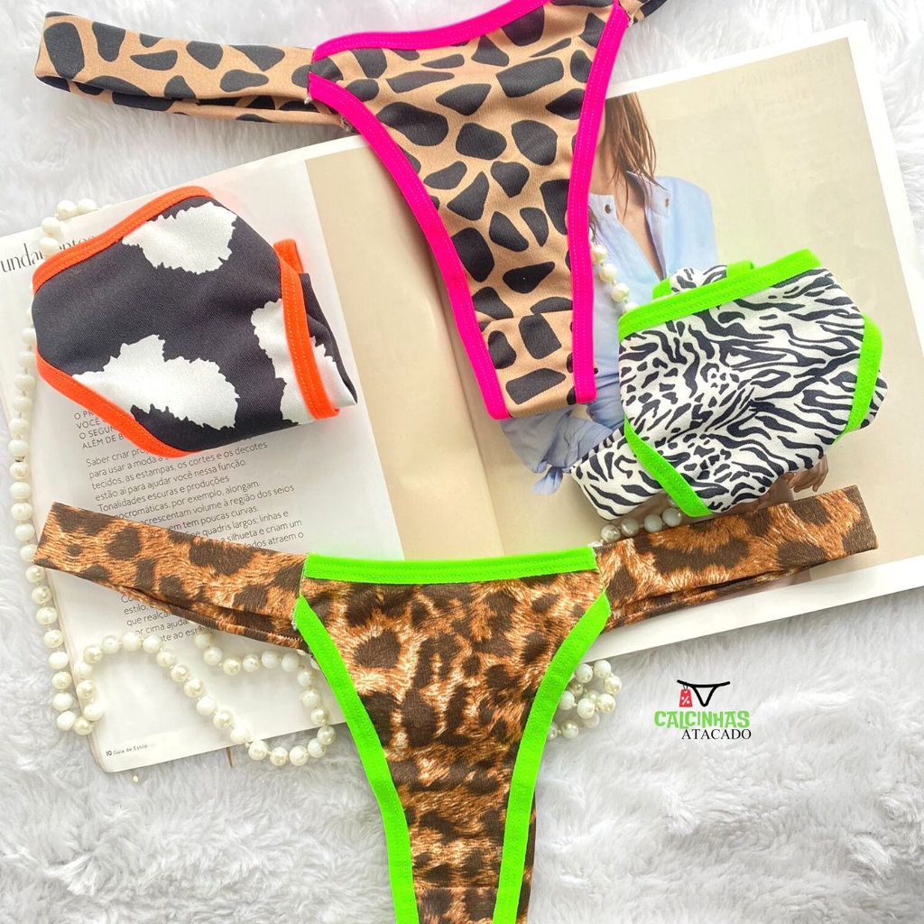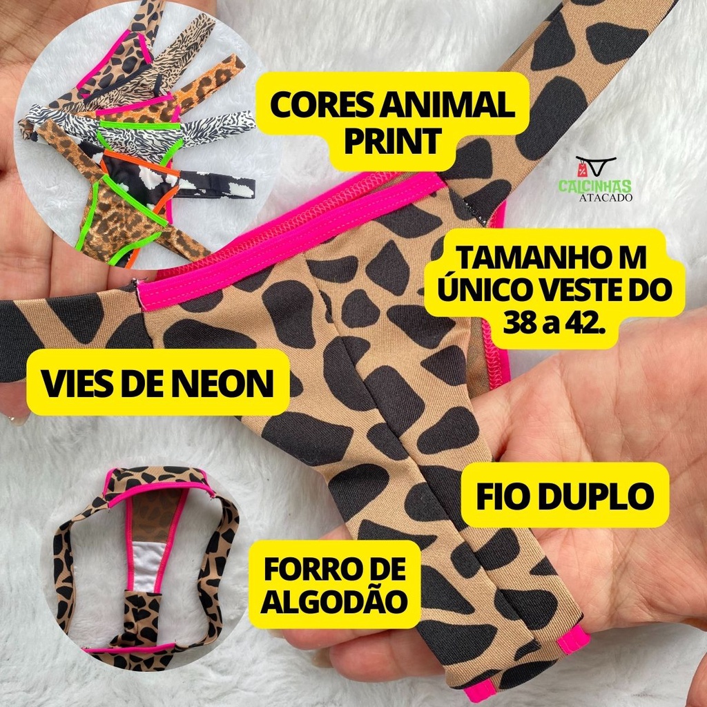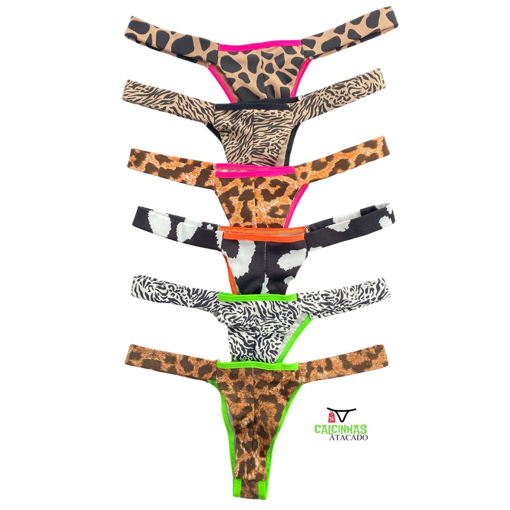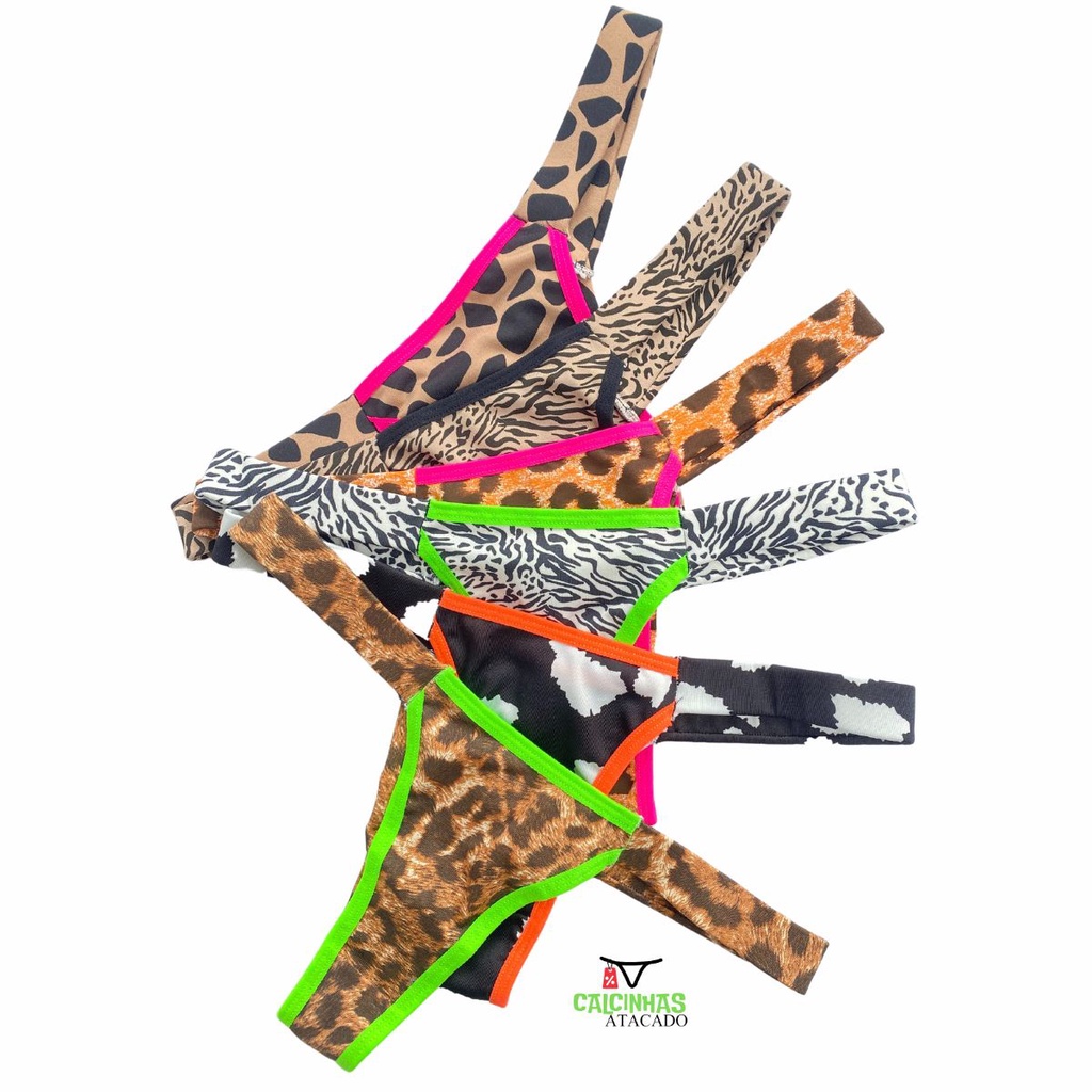 Kit 6 Calcinhas Fio Duplo Animal Print Pala lateral Vies Neon Envio Rápido