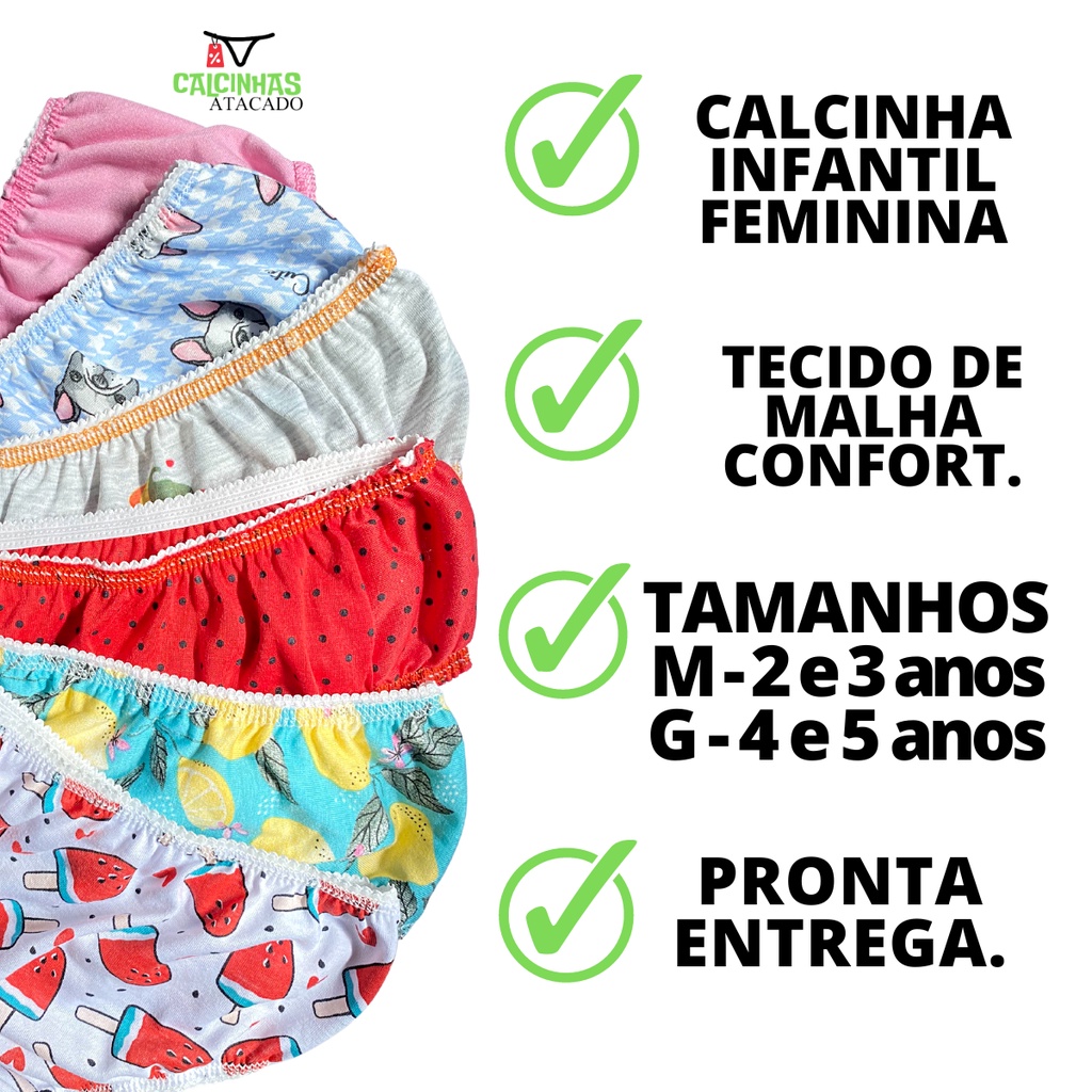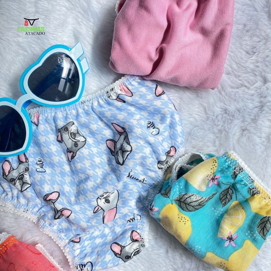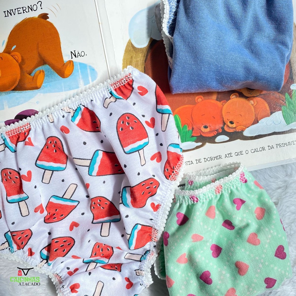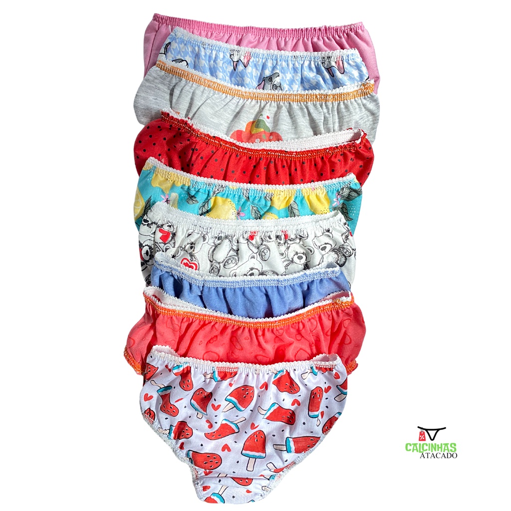 kit 20 Calcinhas Infantil Conforto Malha Algodão Feminina Meninas