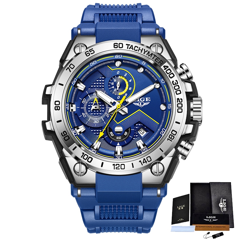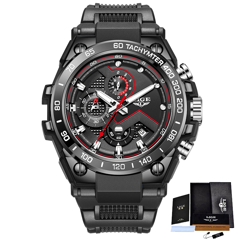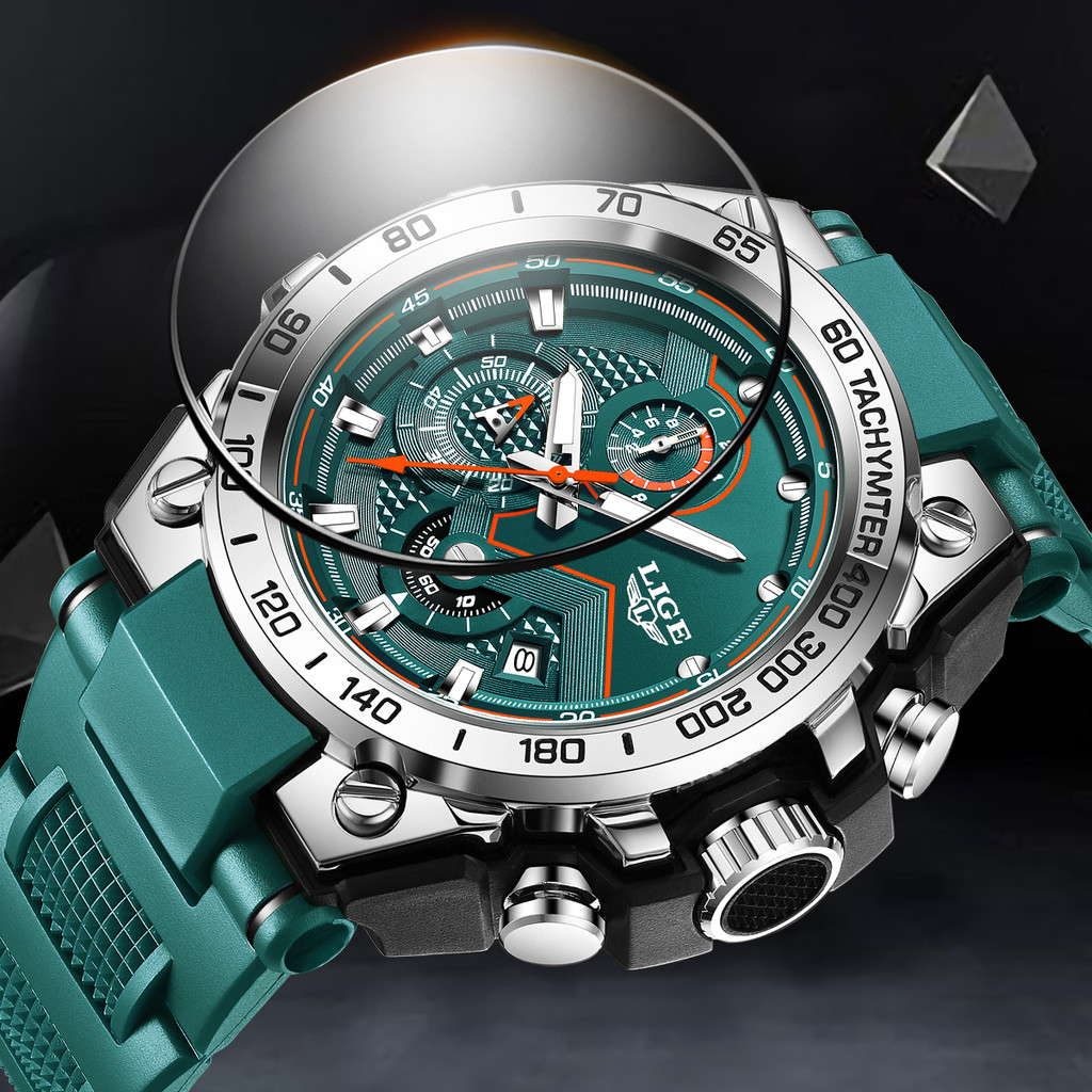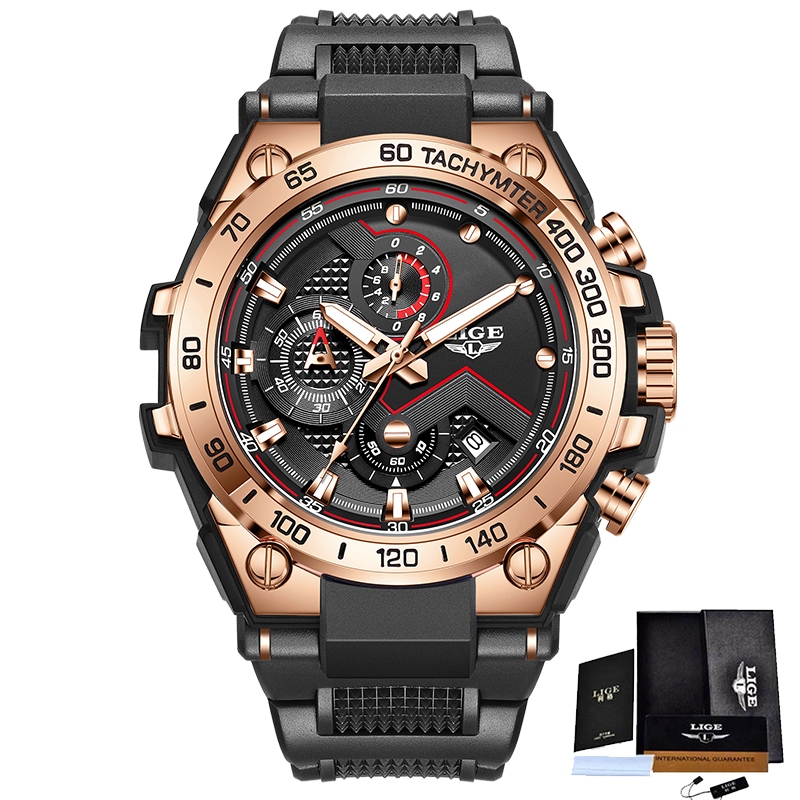 LIGE Relógio Luminoso Original Masculino Unissex Esportes Silicone À Prova D'água Anti-Ferrugem De Pulso Cronógrafo Reló
