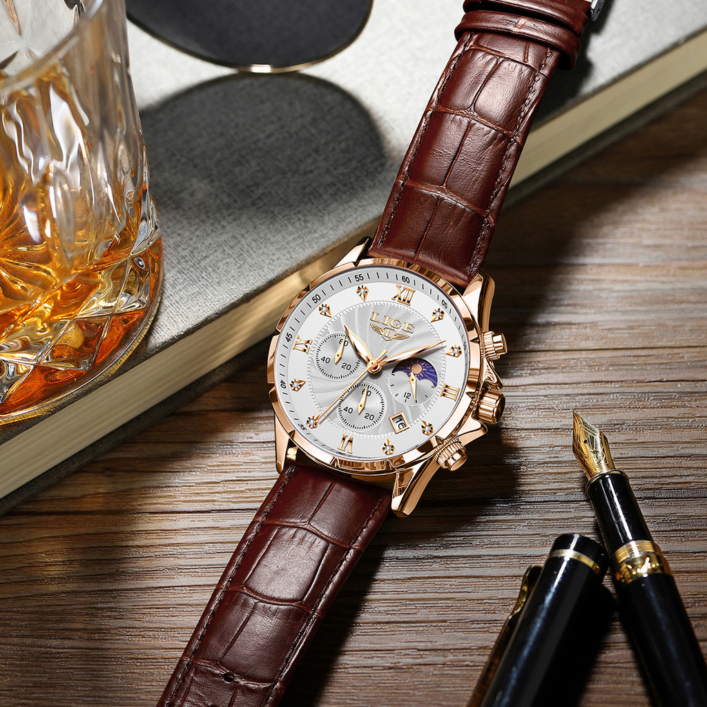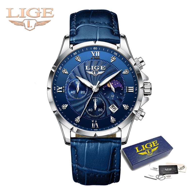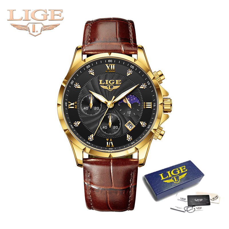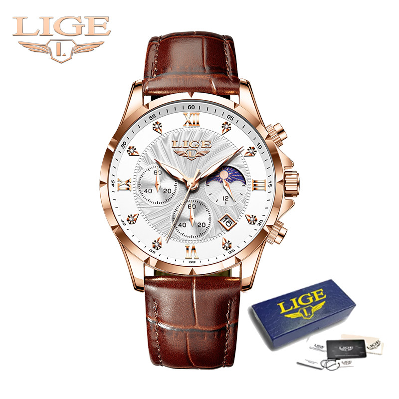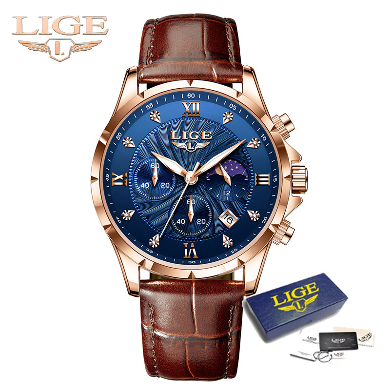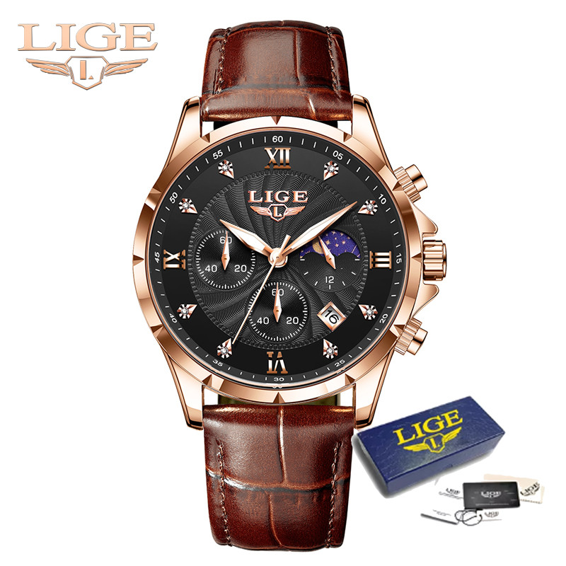 LIGE Relógio Masculino Casal Marca Moda Luminosa Quartzo Relógios De Pulso Casual Negócios Couro À Prova