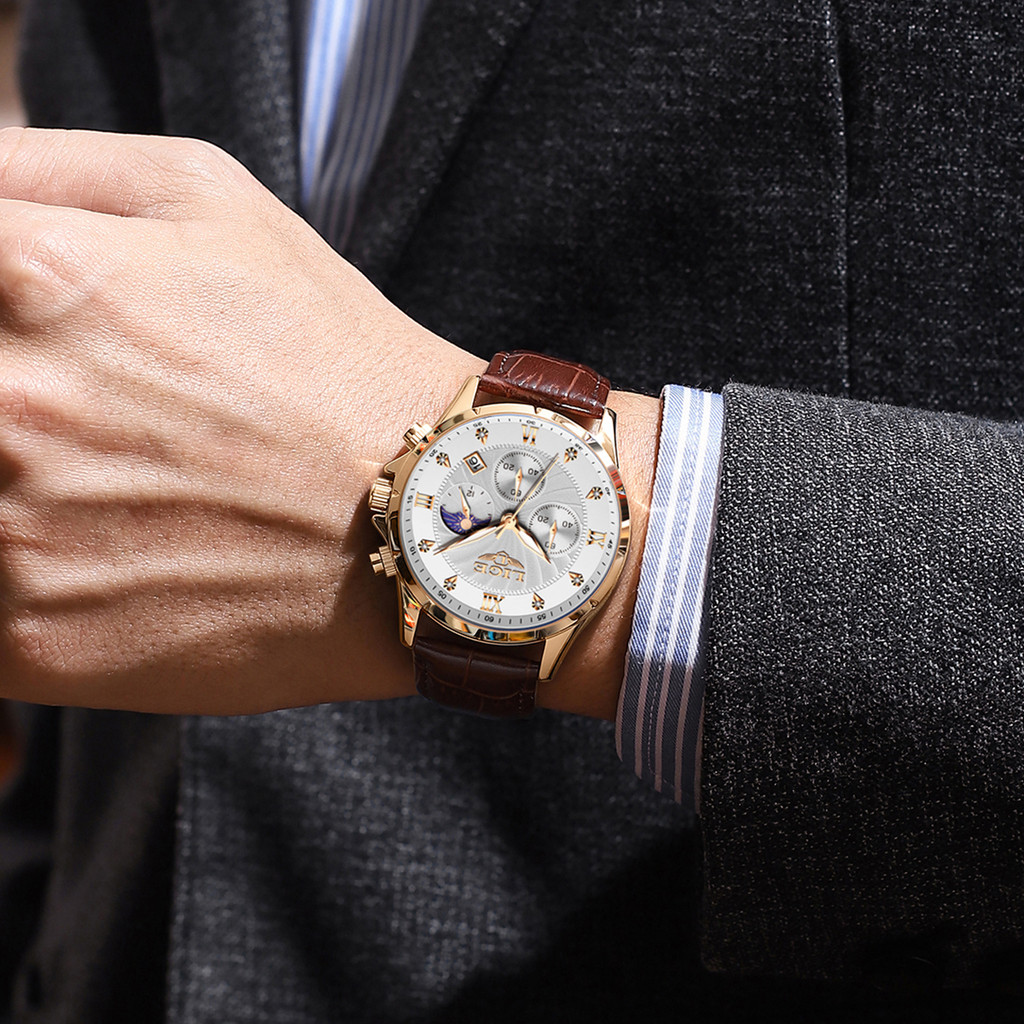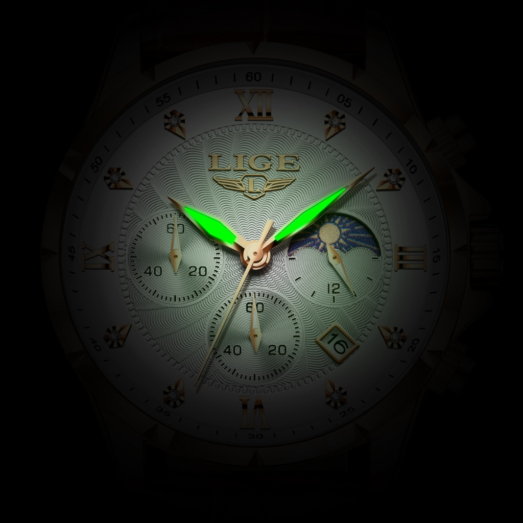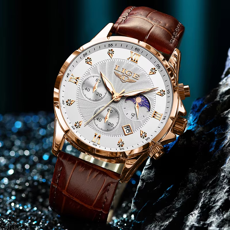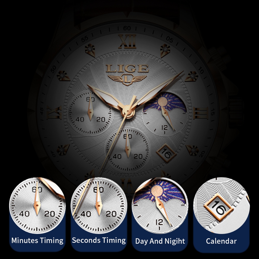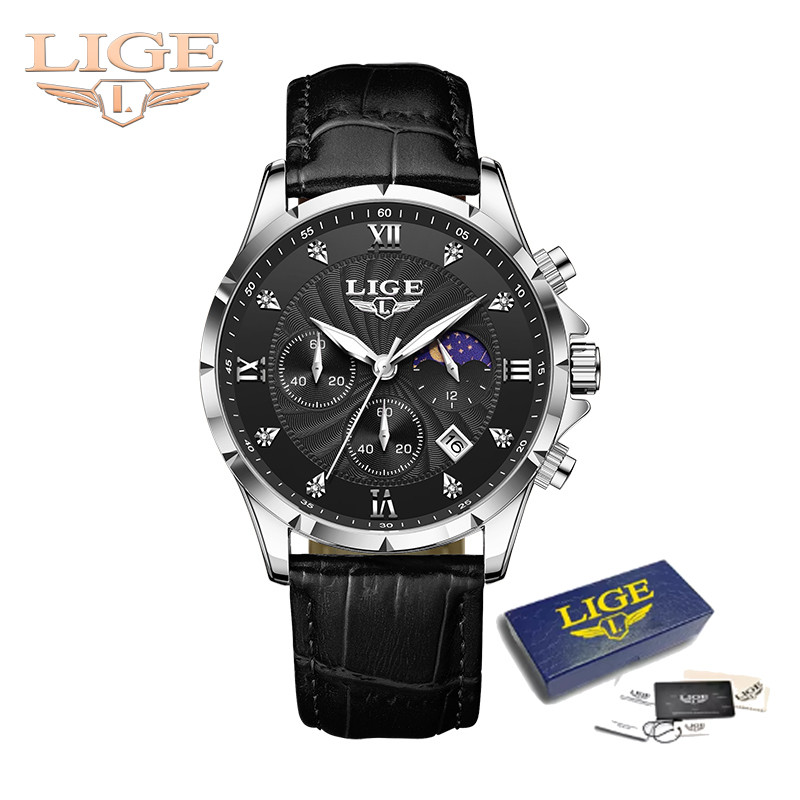 LIGE Relógio Masculino Casal Marca Moda Luminosa Quartzo Relógios De Pulso Casual Negócios Couro À Prova