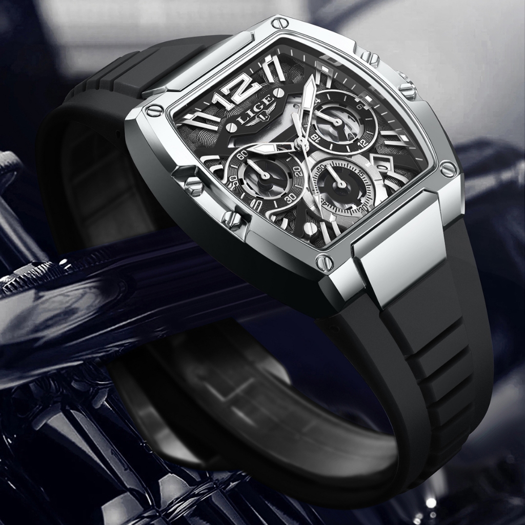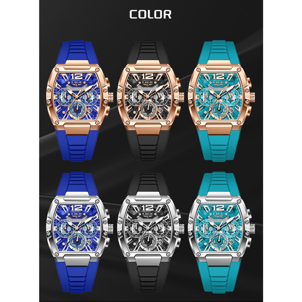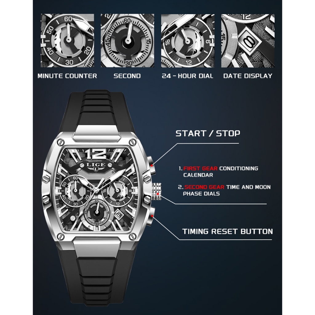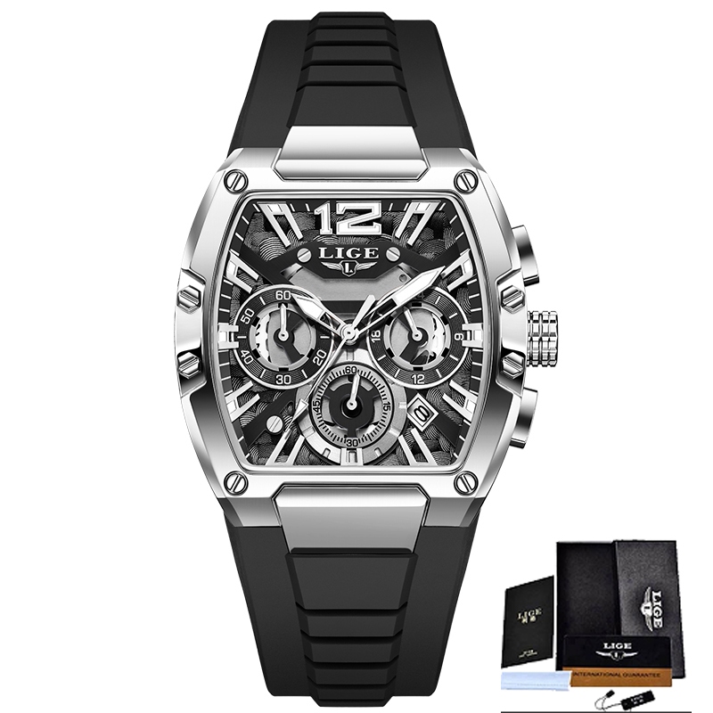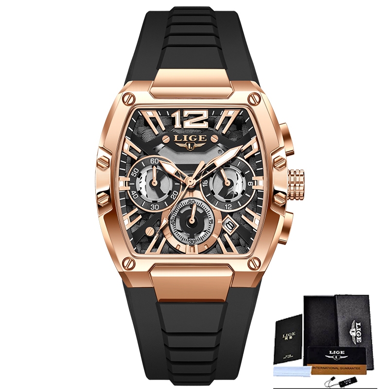 LIGE Marca Relógio Moda Esporte Cronógrafo Calendário Luminoso Pulseira De Silicone De Pulso De Quartzo