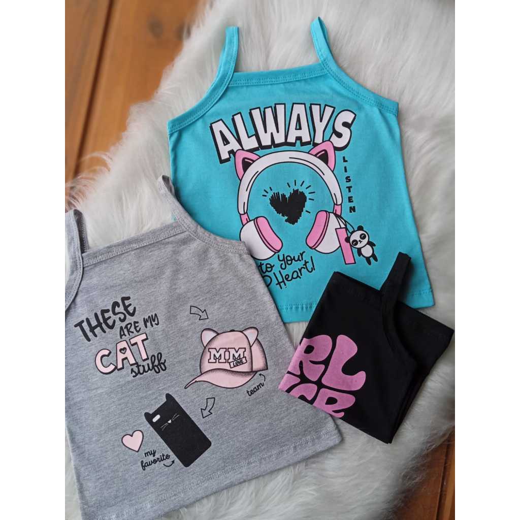 Kit 3 Camiseta Regata de Alça Menina Verão 1 ao 14