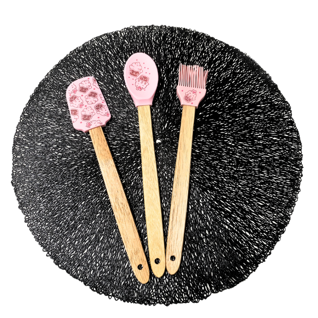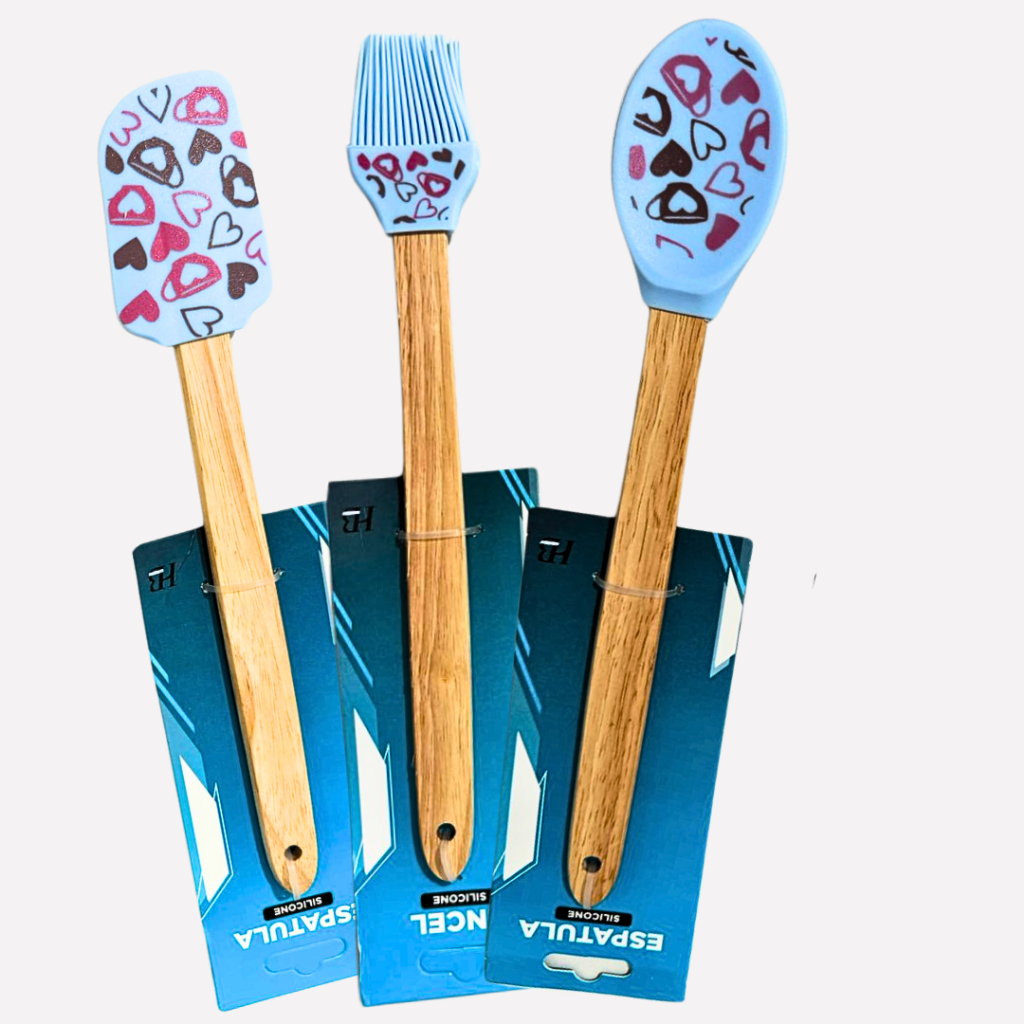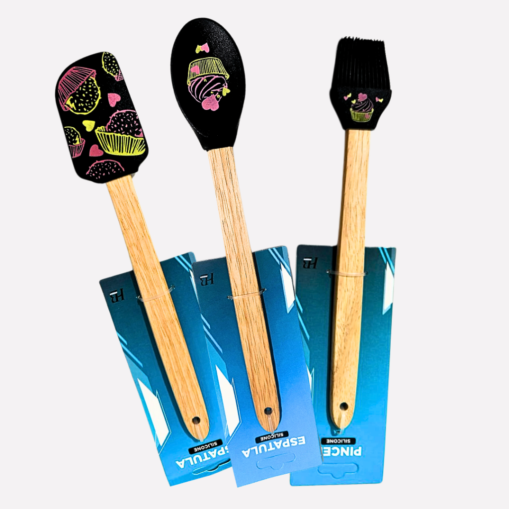 Kit Colher Pincel Pão Duro Silicone E Cabo Madeira