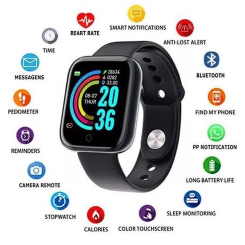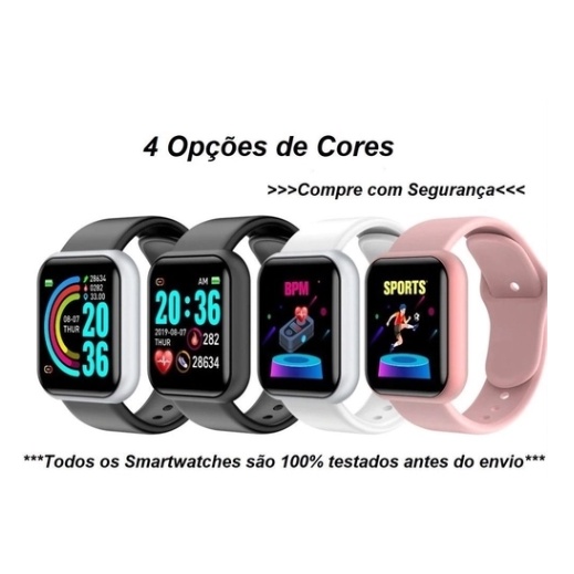 Relógio Inteligente D20 Y68 Pro Smartwatch | Coloca Foto Na Tela, Monitora Saude E Notificações | Esportivo