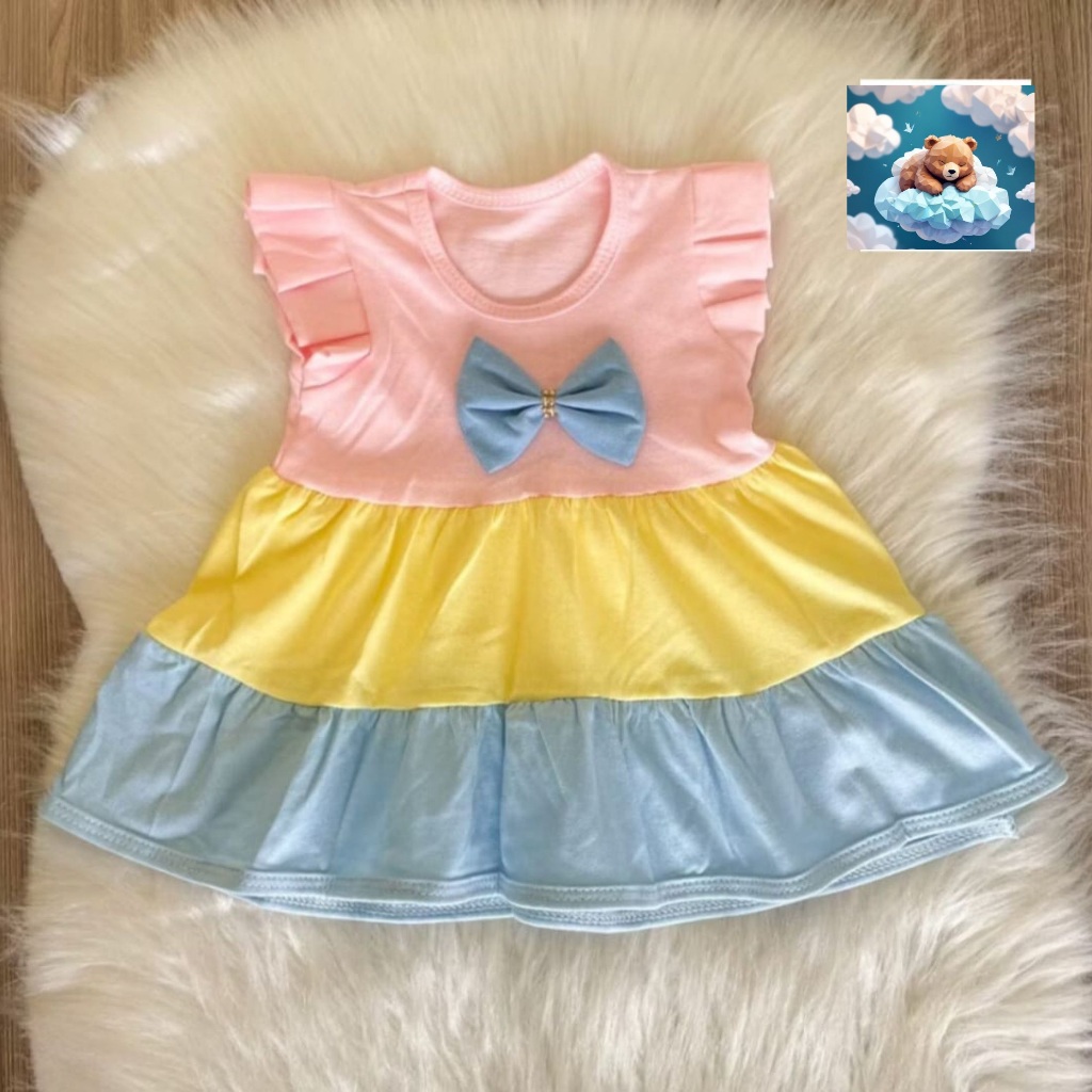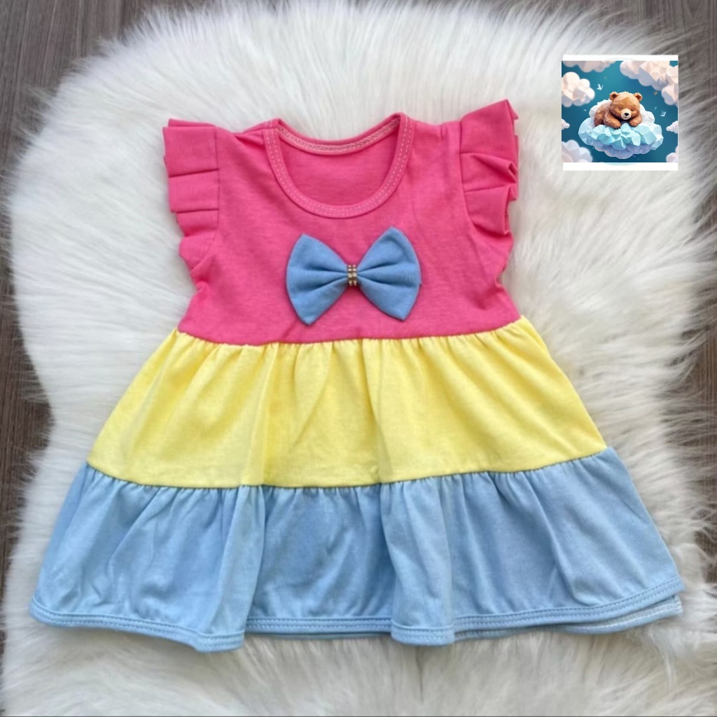 vestido bebê três cores algodão menina