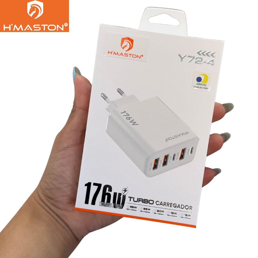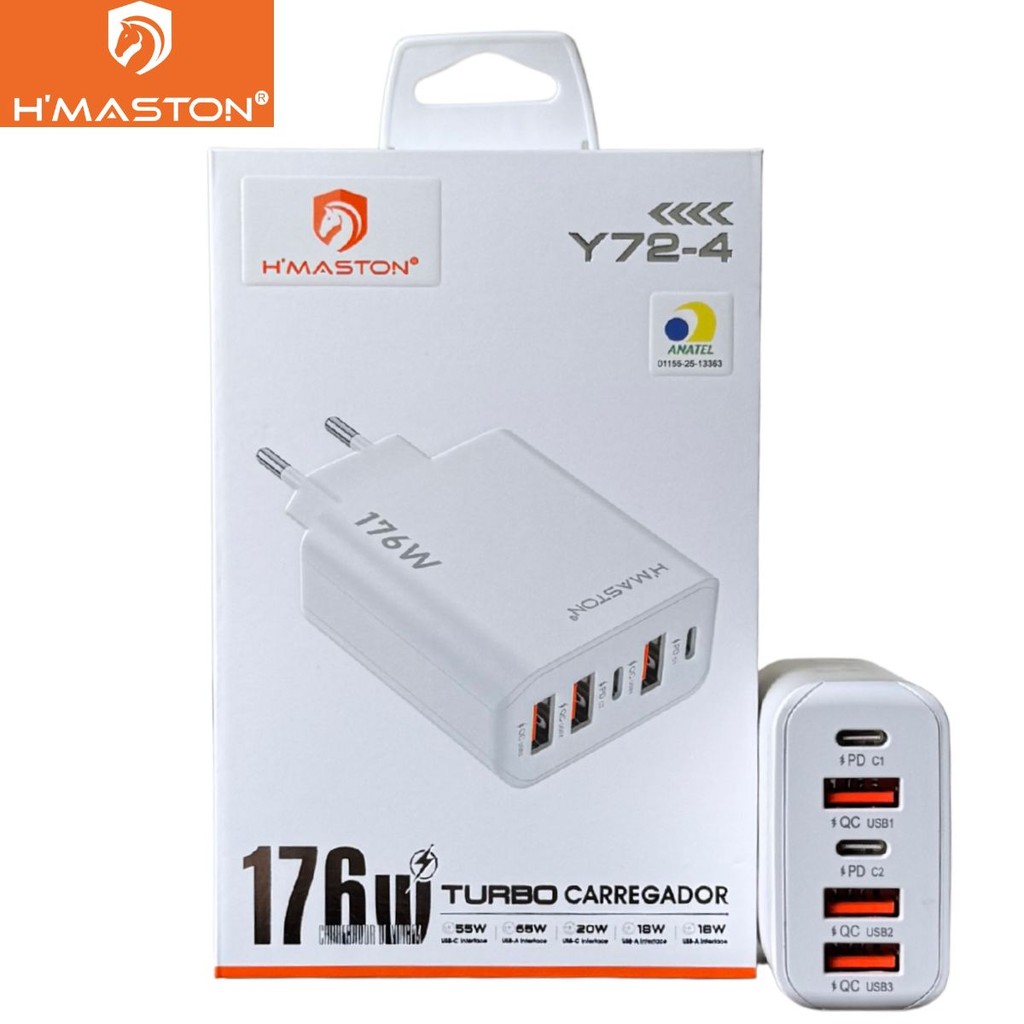 Fonte Carregador H’Maston 176W com 5 Portas 2 USB-C + 3 USB-A Alta Velocidade Y72-4