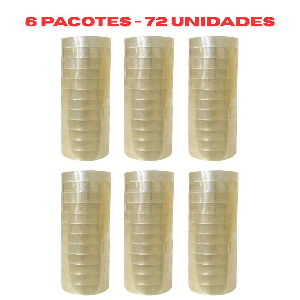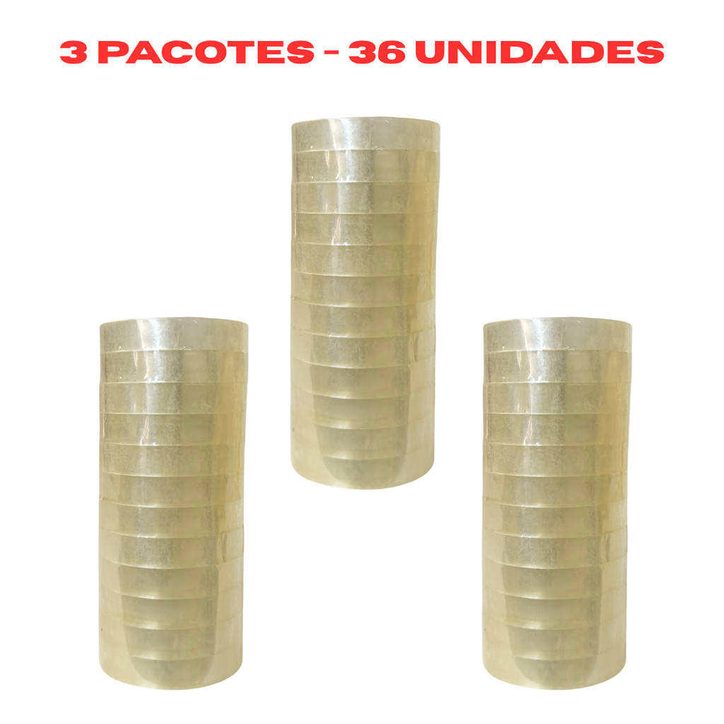 36 Rolos de Fita Adesiva Pequena Durex 50Metros Transparente 12mmx50m ATACADO