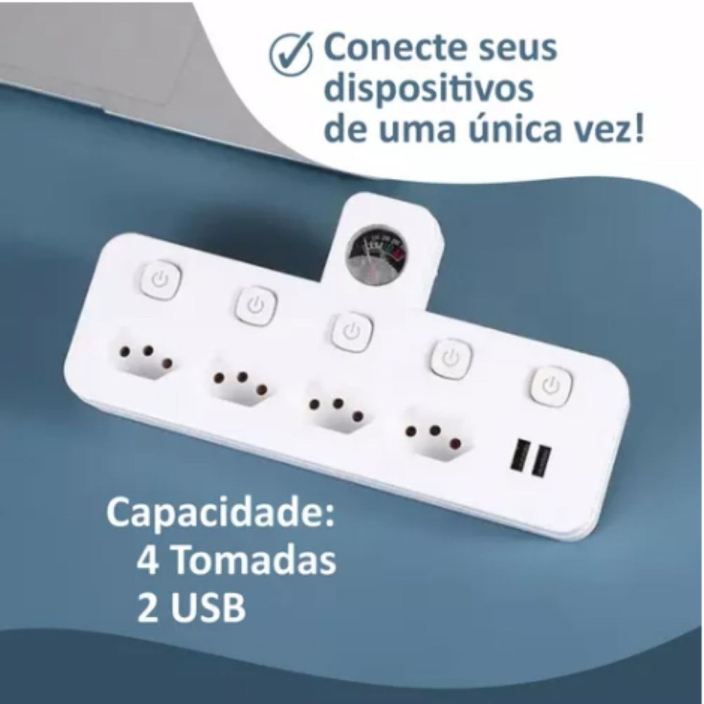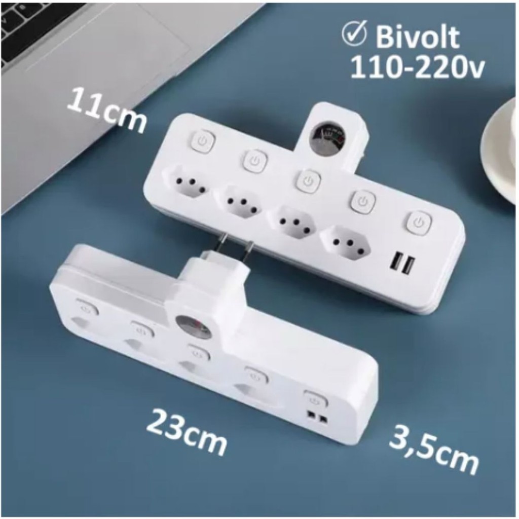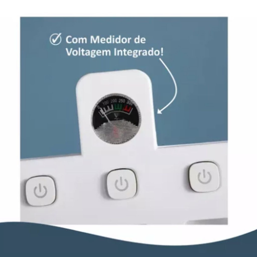 Filtro De Linha Com Adaptador para 4 Tomadas + 2 Usb e medidor de Voltagem 110-220V