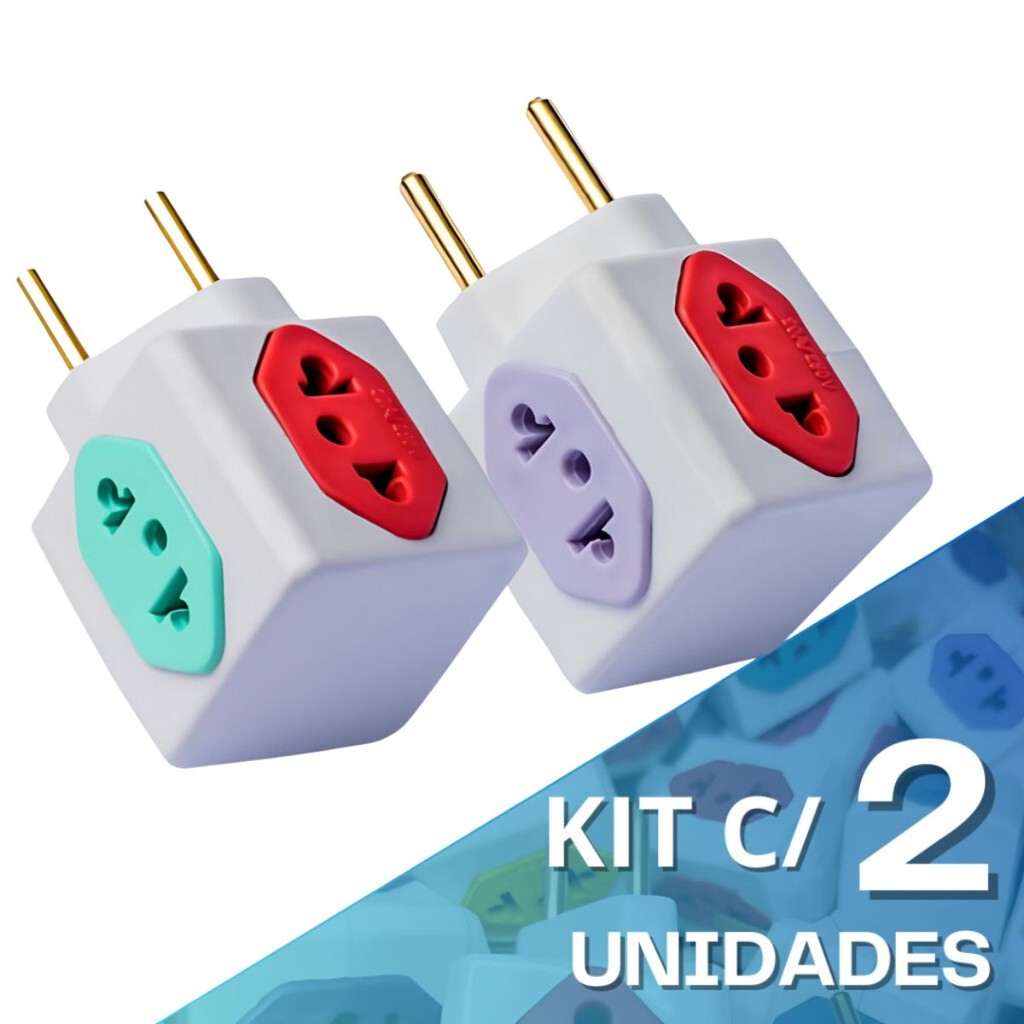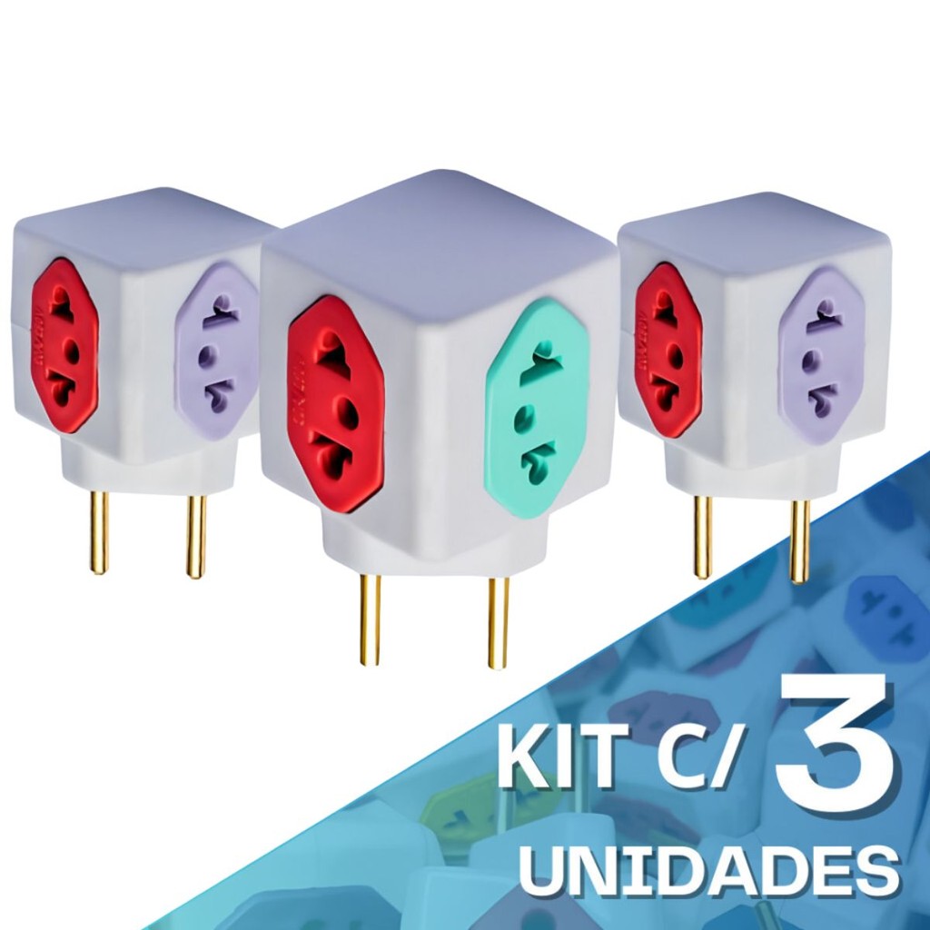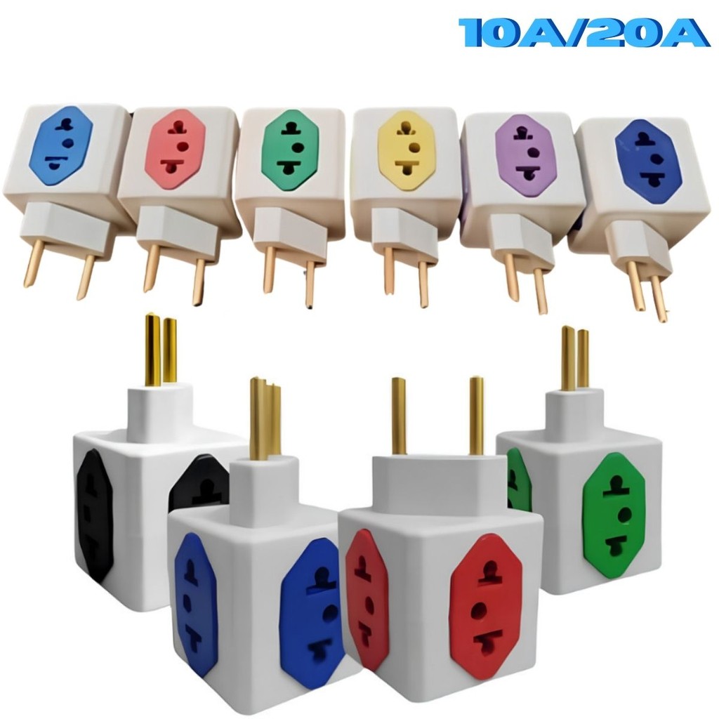 Adaptador de Tomada Benjamin CUBO 10A/20A Pino Maciço Resistente 4 Tomadas Colorida