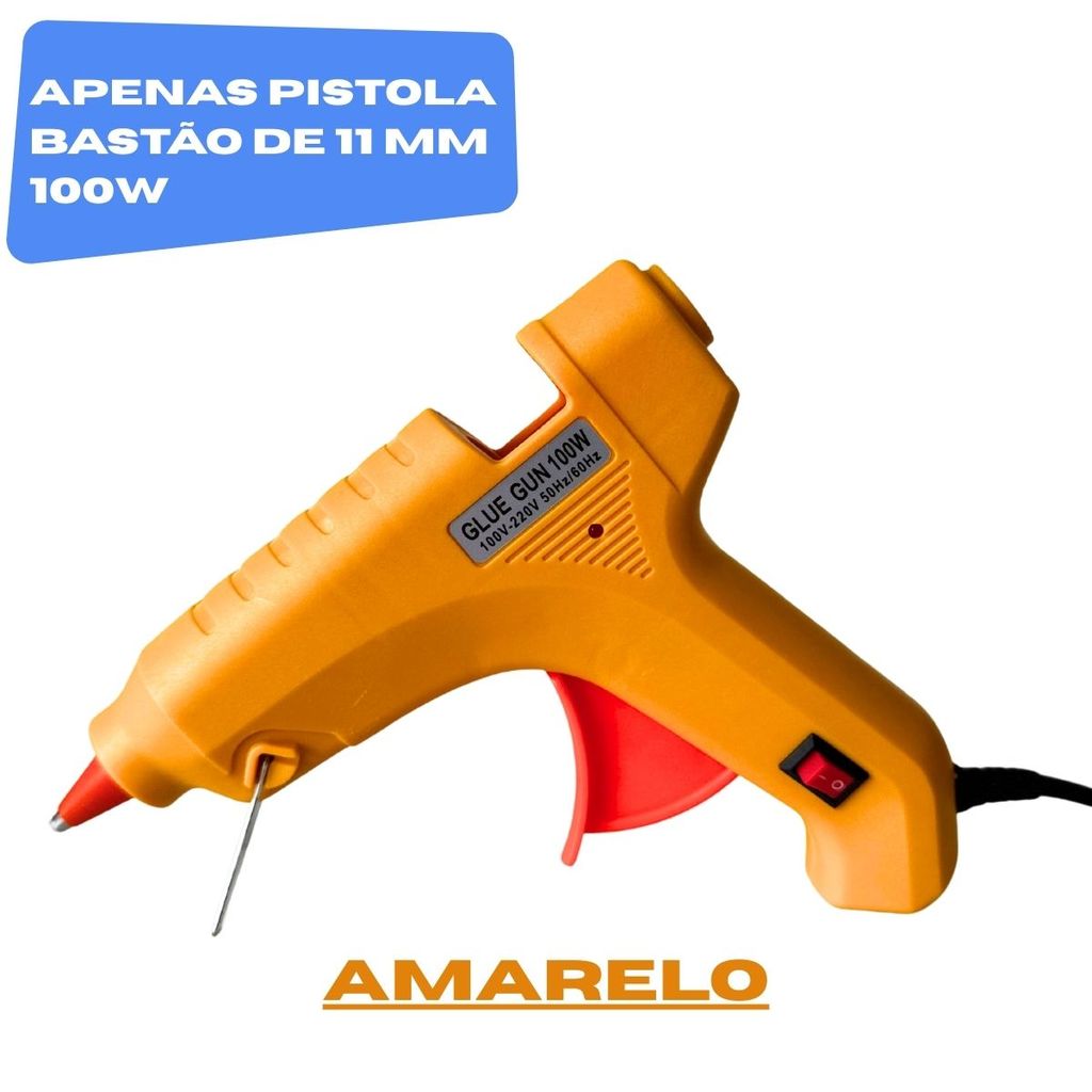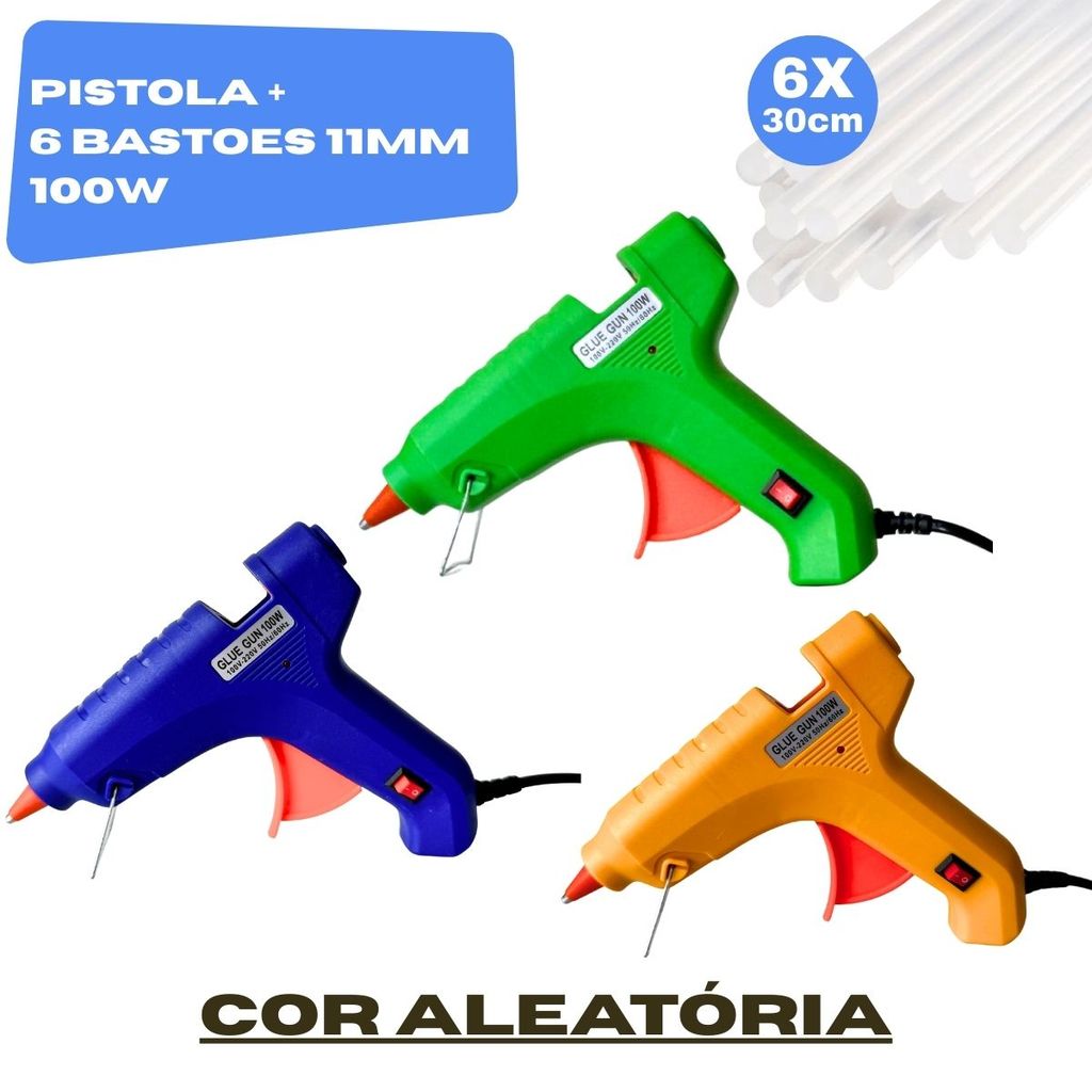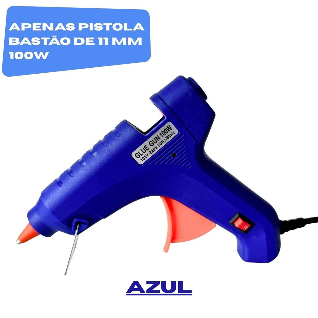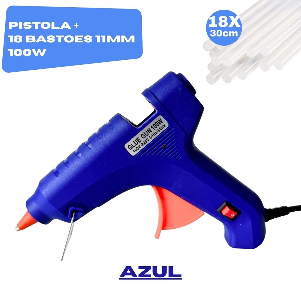 Pistola de Cola Quente Grande 100W + 18 Bastões 11mm Profissional Bico Fino Não Pinga Botão LIGA/DESL Bivolt