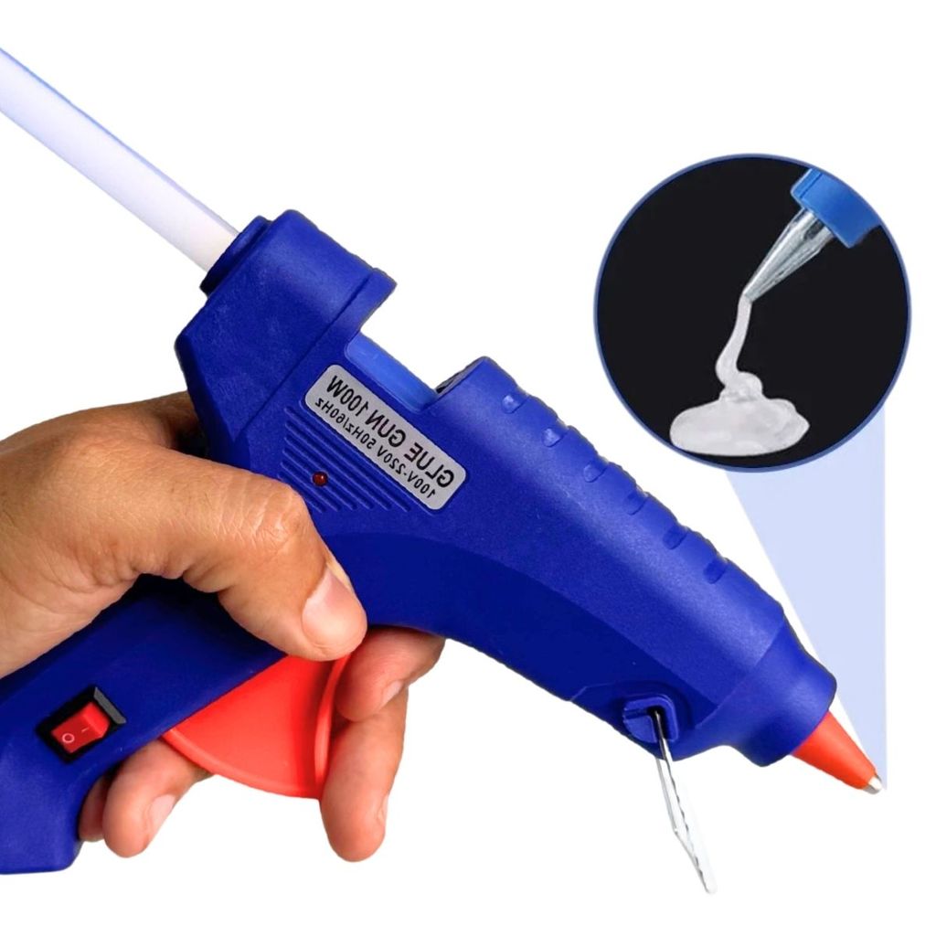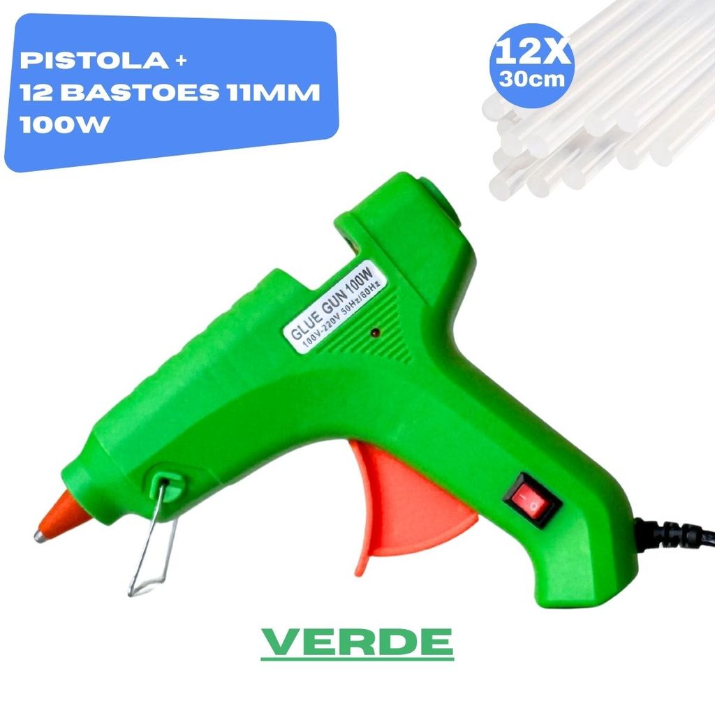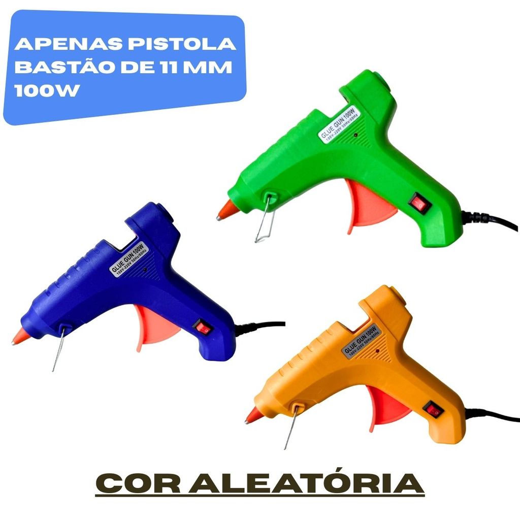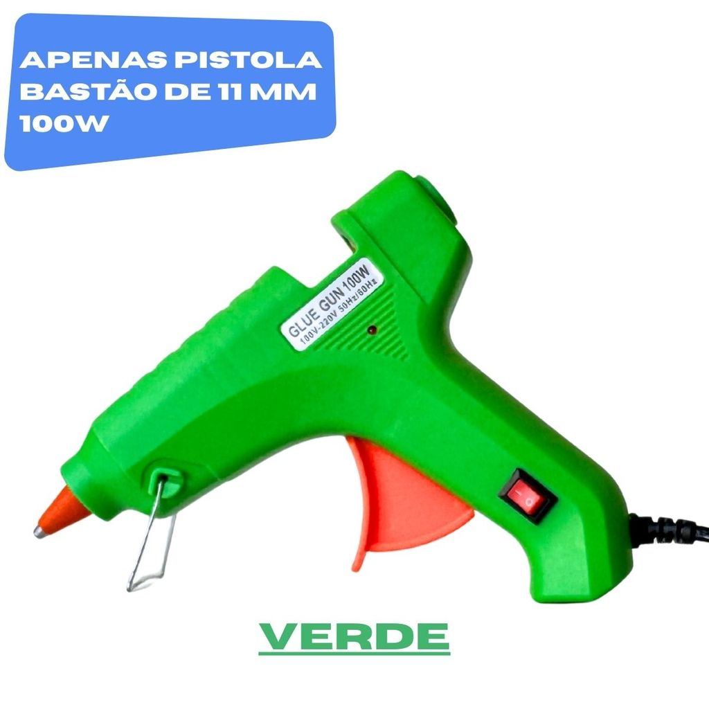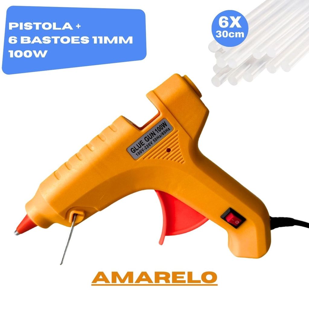 Pistola de Cola Quente Grande 100W + 18 Bastões 11mm Profissional Bico Fino Não Pinga Botão LIGA/DESL Bivolt