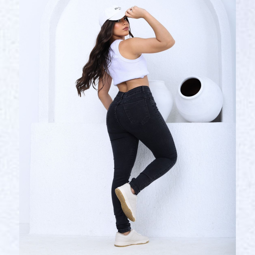 CAMAROTE Calça Jeans Marmorizada Preta Cintura alta