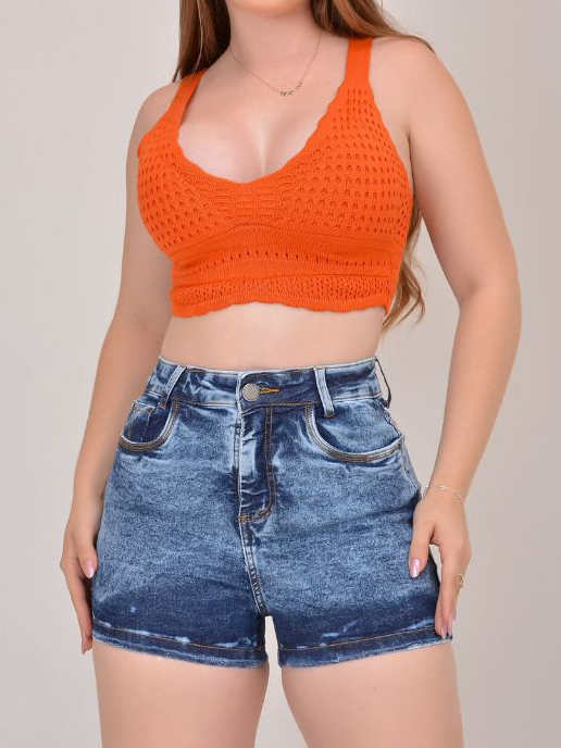 Short Jeans Feminino Com Elastano Cintura Alta Bermuda Empina Bumbum Premium Lycra Barra
