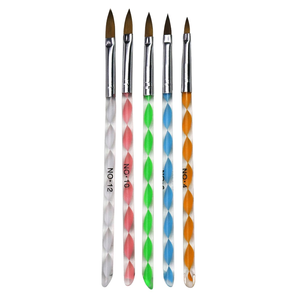 Kit 5 Pincéis Tamanho 4 6 8 10 12 Led/Uv Acrigel Acrílico Unhas Manicure