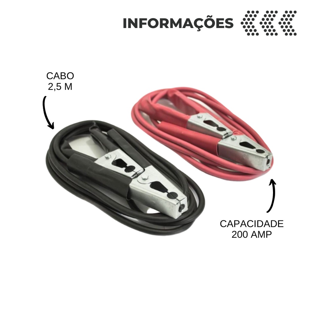 Cabo de Transferência Chupeta Carga de Bateria De Carro Com 2,5m 200amp
